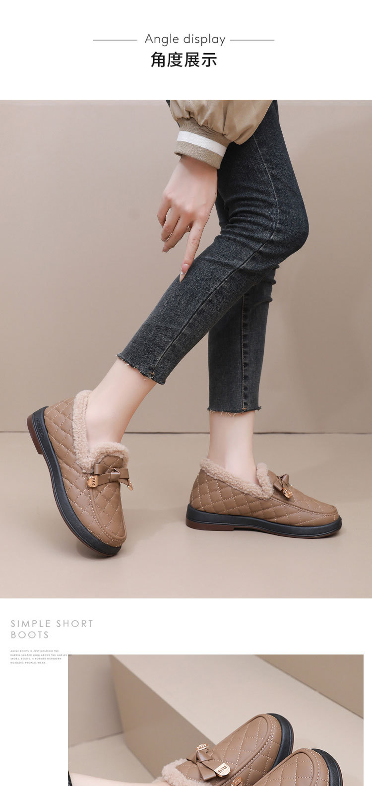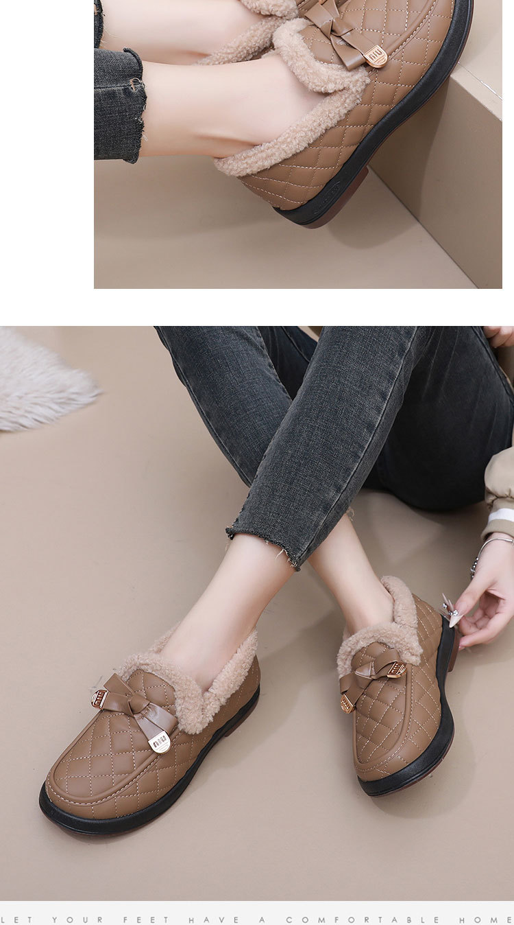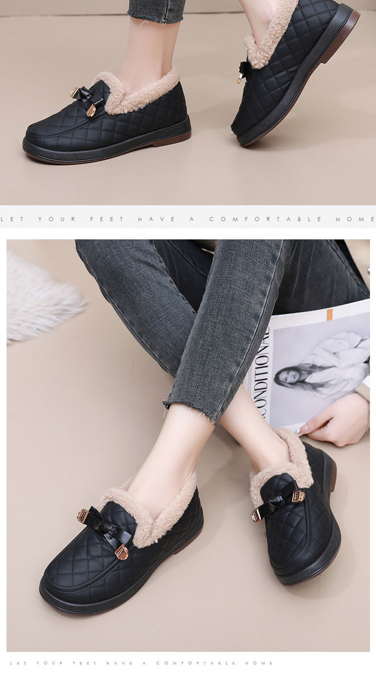 冬用レディース耐摩耗性厚手綿靴、柔らかい底と表面の豆豆シューズ、滑り止めフラットソール、カジュアルでおしゃれなファーシューズ