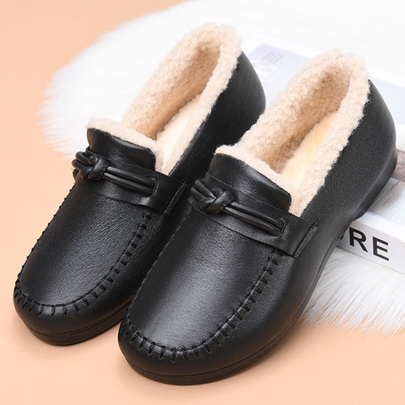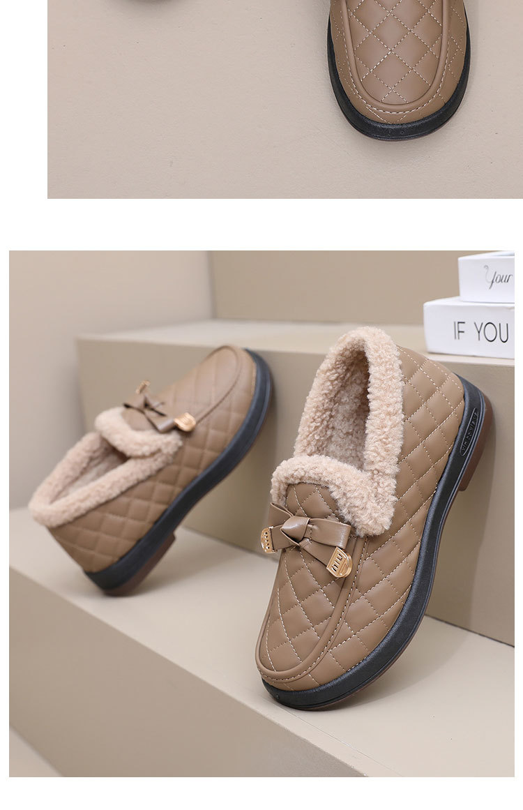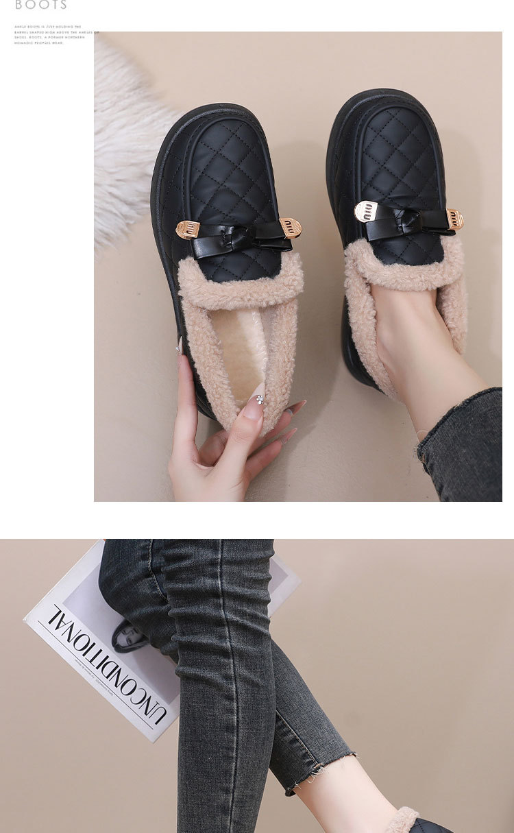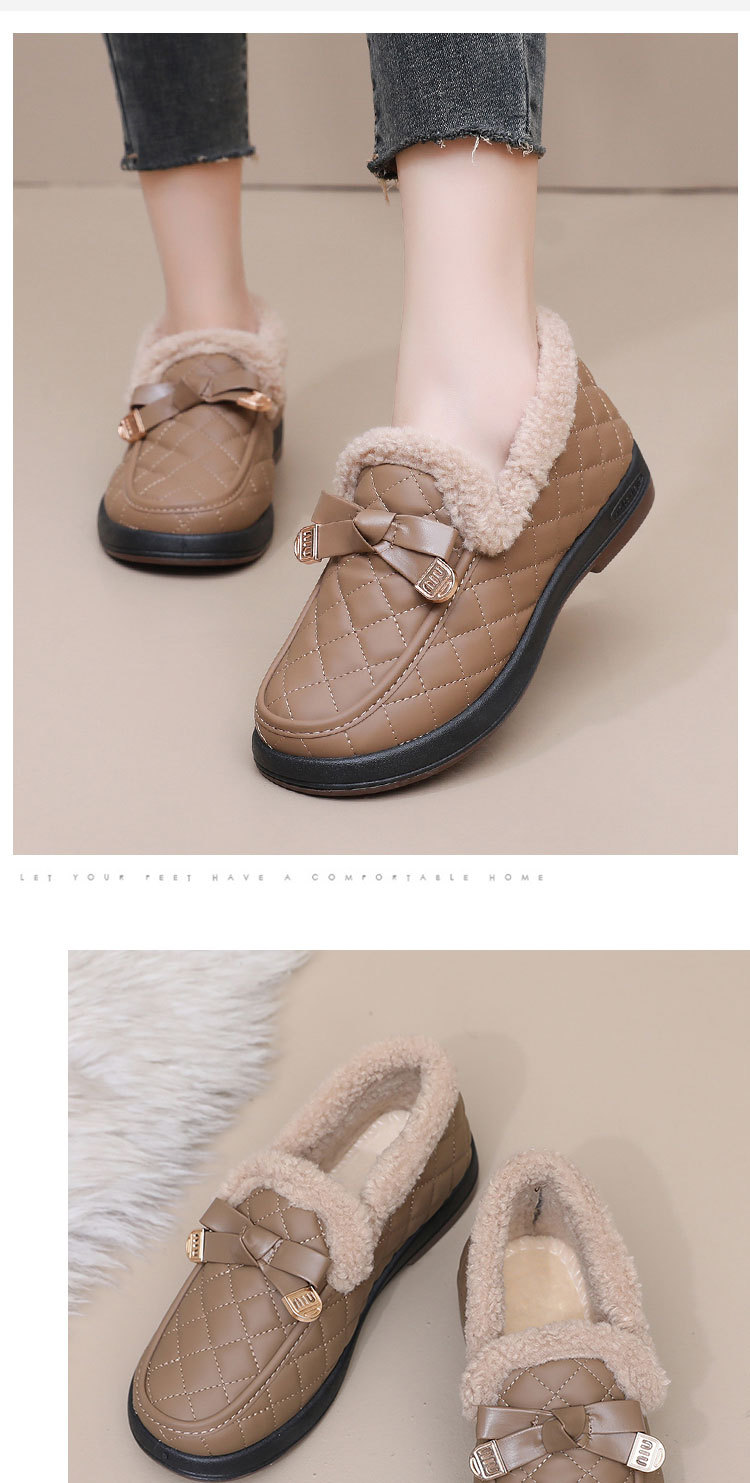 冬用レディース耐摩耗性厚手綿靴、柔らかい底と表面の豆豆シューズ、滑り止めフラットソール、カジュアルでおしゃれなファーシューズ