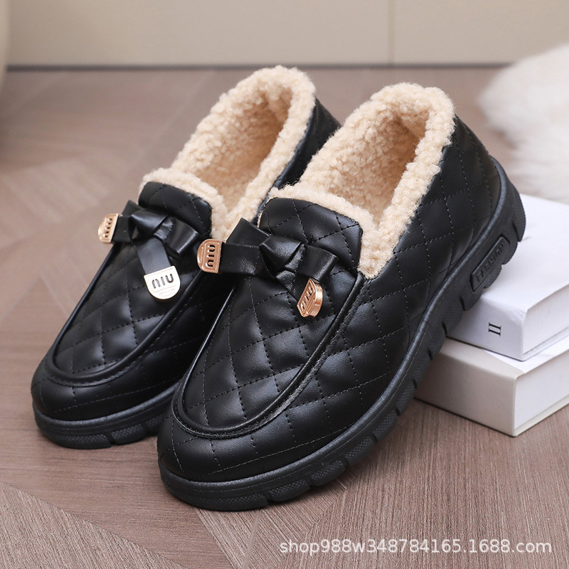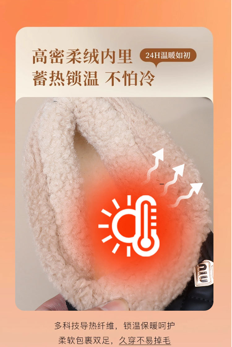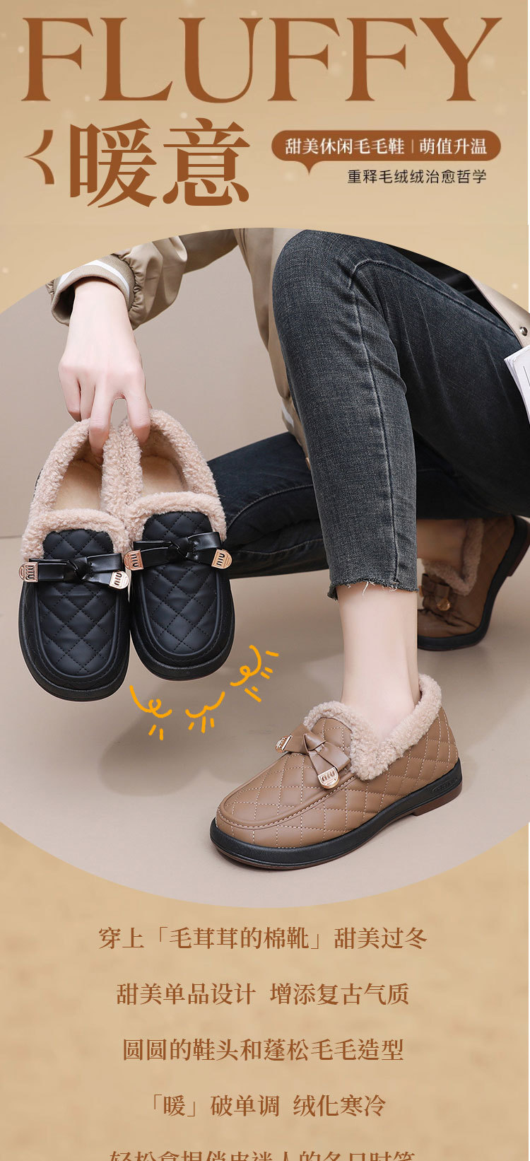 小香风面包鞋女冬季加绒保暖加厚棉鞋女时尚防滑一脚蹬低帮雪地靴