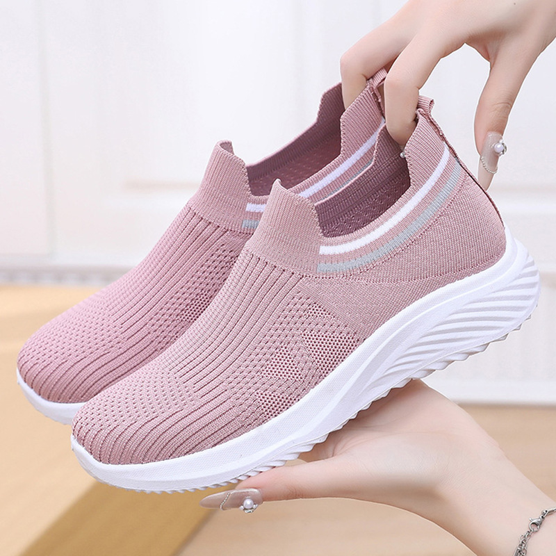 靴女2025新型越境女靴飛織通気性カップルモデルカジュアル靴ソフト底軽量通気運動靴