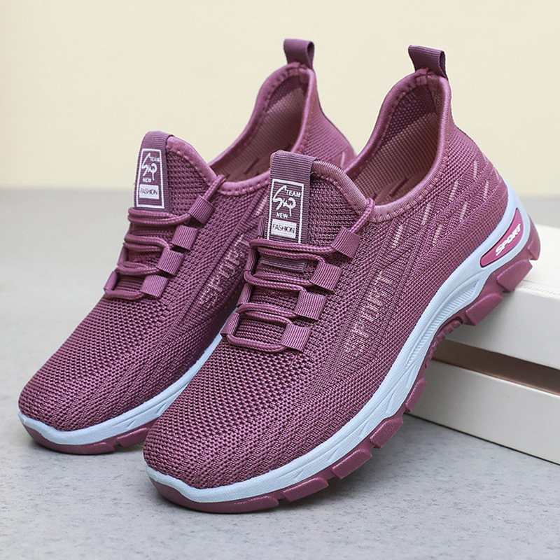 靴の女性の新型の柔らかい底のレジャー運動の女性の靴の通気性の靴の飛織のネットの靴のメーカーは代行してランニング靴の女性を代行します。