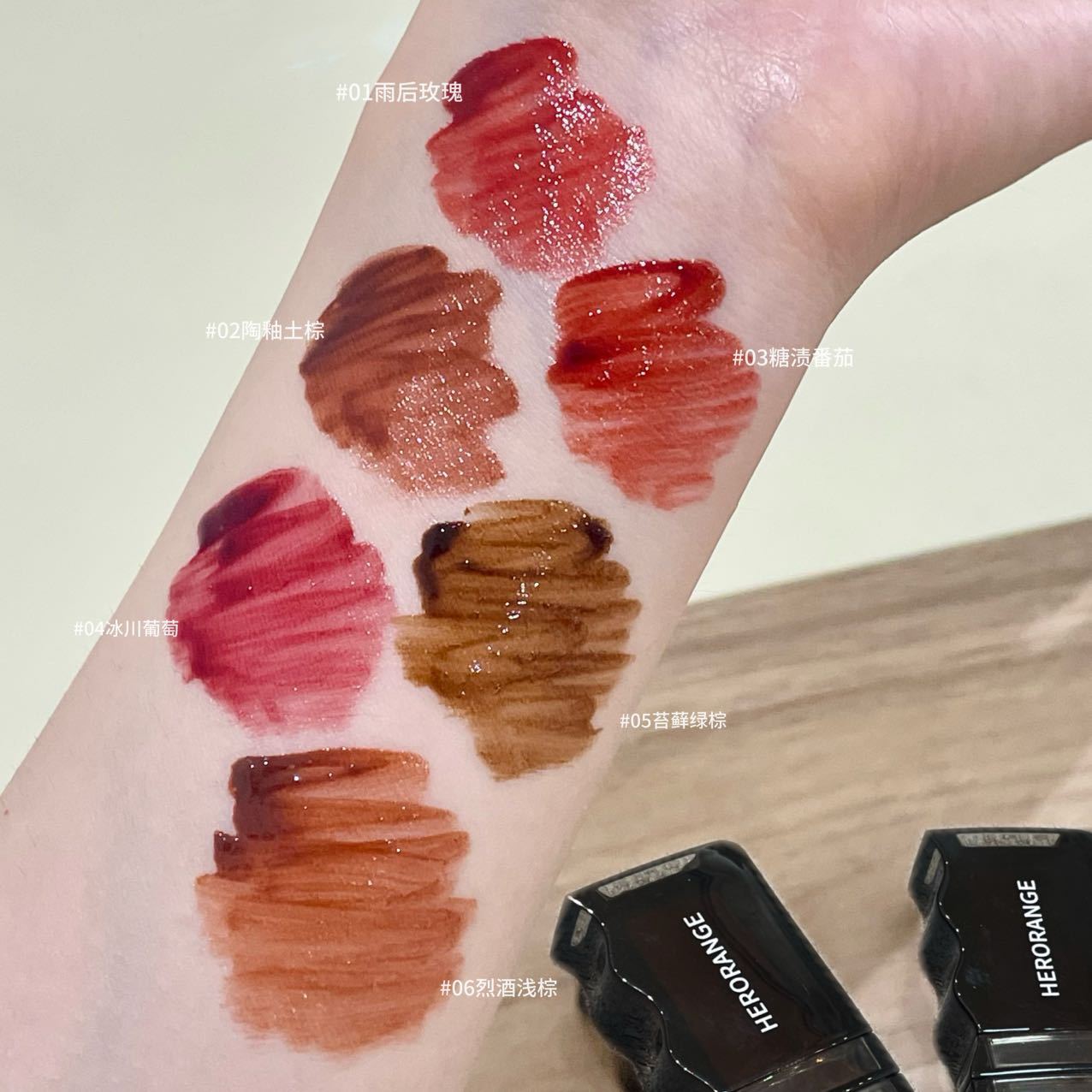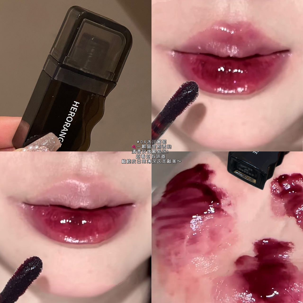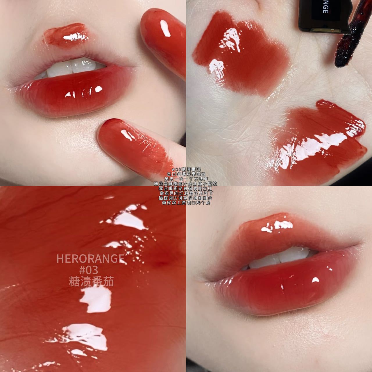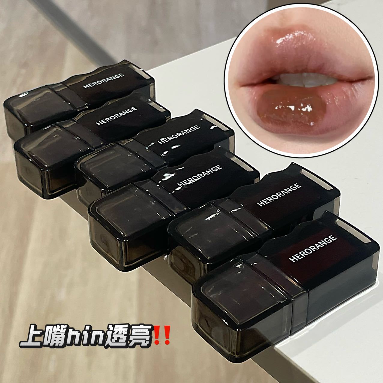 HERORANGE ~ 氷透感鏡面唇釉薬潤い水光感ブツブツガラス唇純欲白口紅唇彩