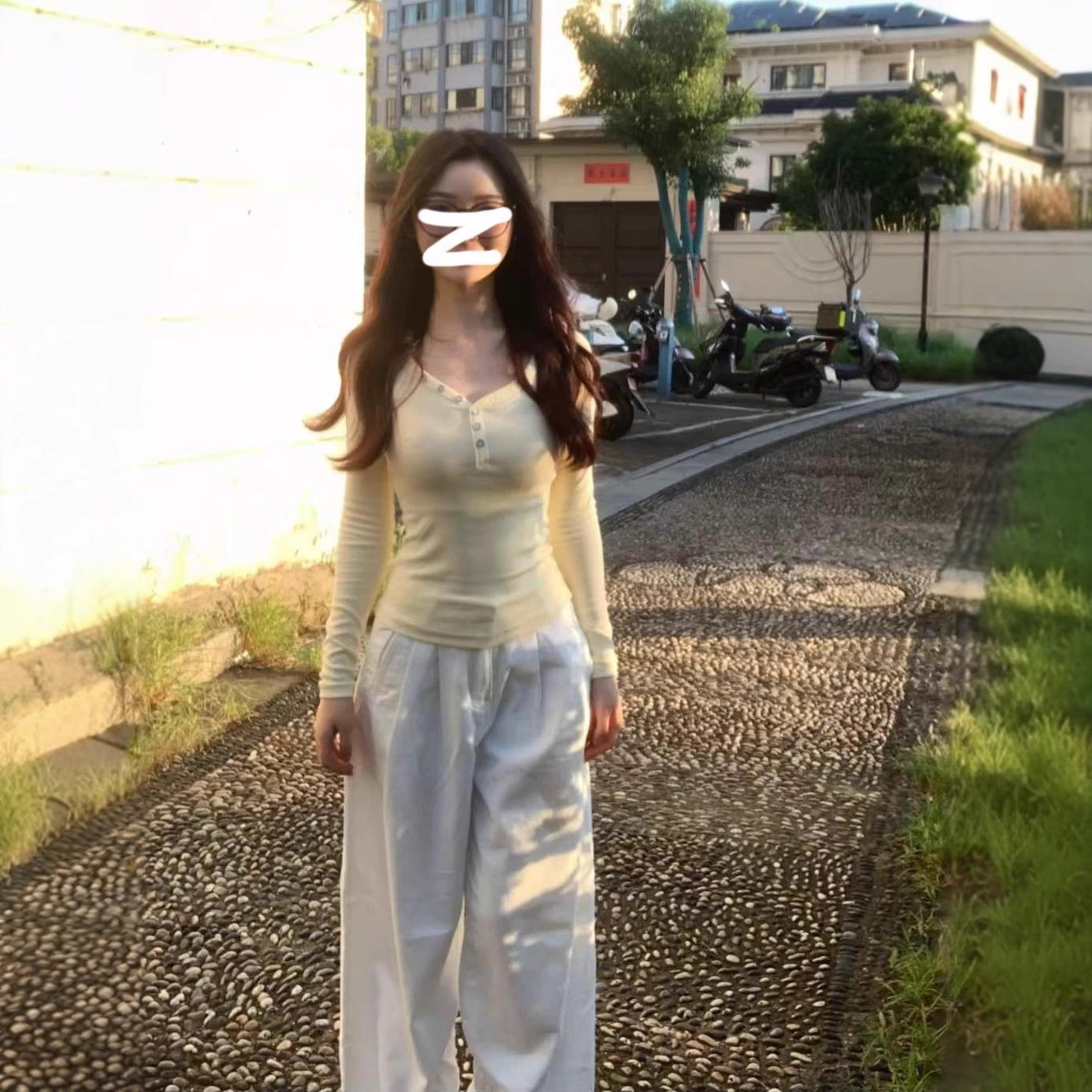 甜辣V领纽扣设计感小众长袖T恤女2025秋季正肩修身显瘦打底衫上衣