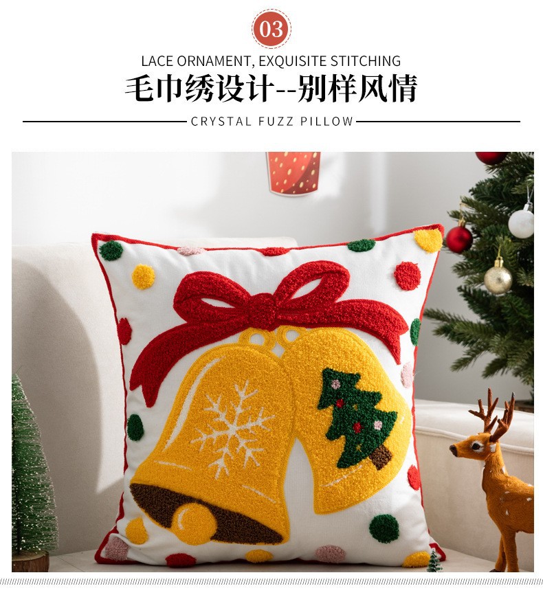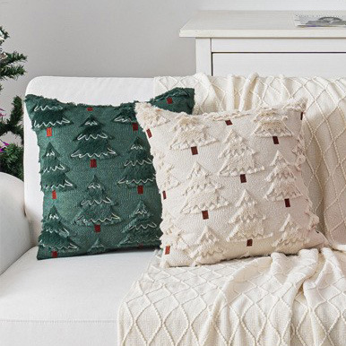 亚马逊/temu跨境代发毛巾绣圣诞树抱枕套 节日客厅装饰靠垫