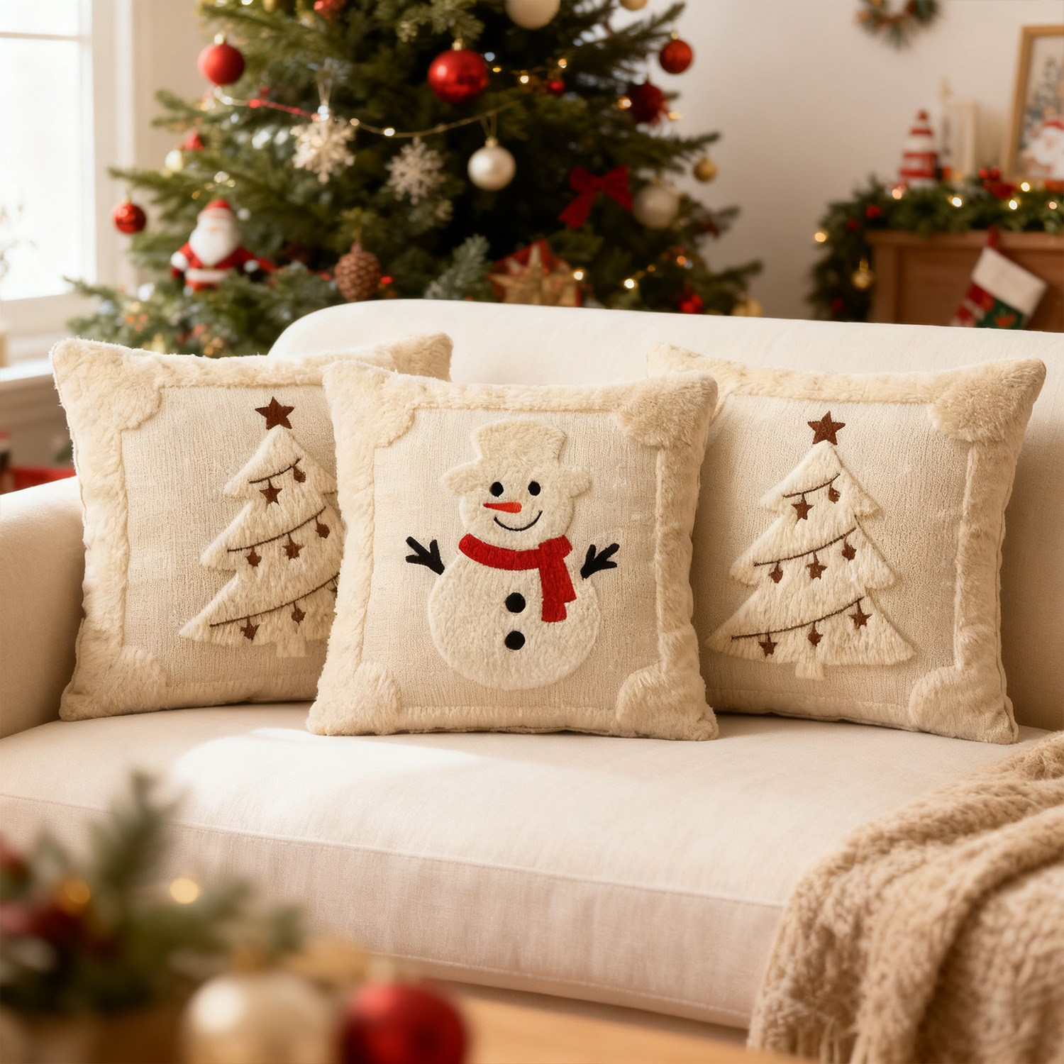 クリスマススタイル国境を越えたアマゾンのベルベット抱き枕カバーリビングソファ雪だるまクリスマスツリーソファー抱き枕カバー