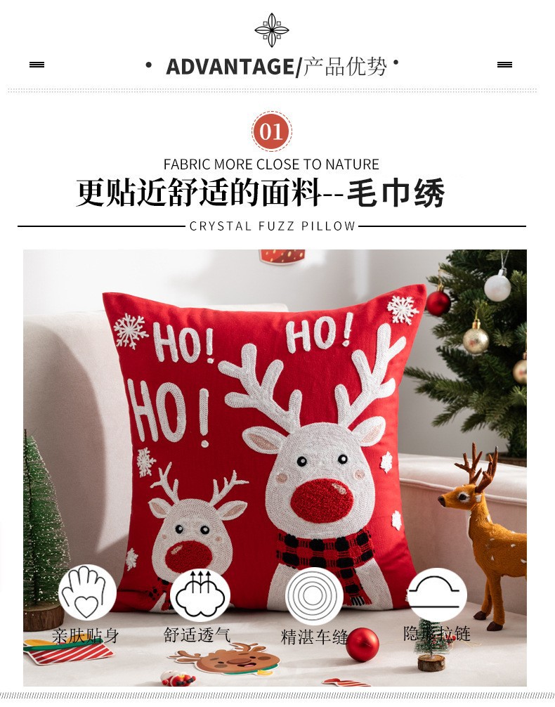 跨境毛巾绣圣诞老人雪花靠枕套抱枕套不含芯简约沙发靠垫套