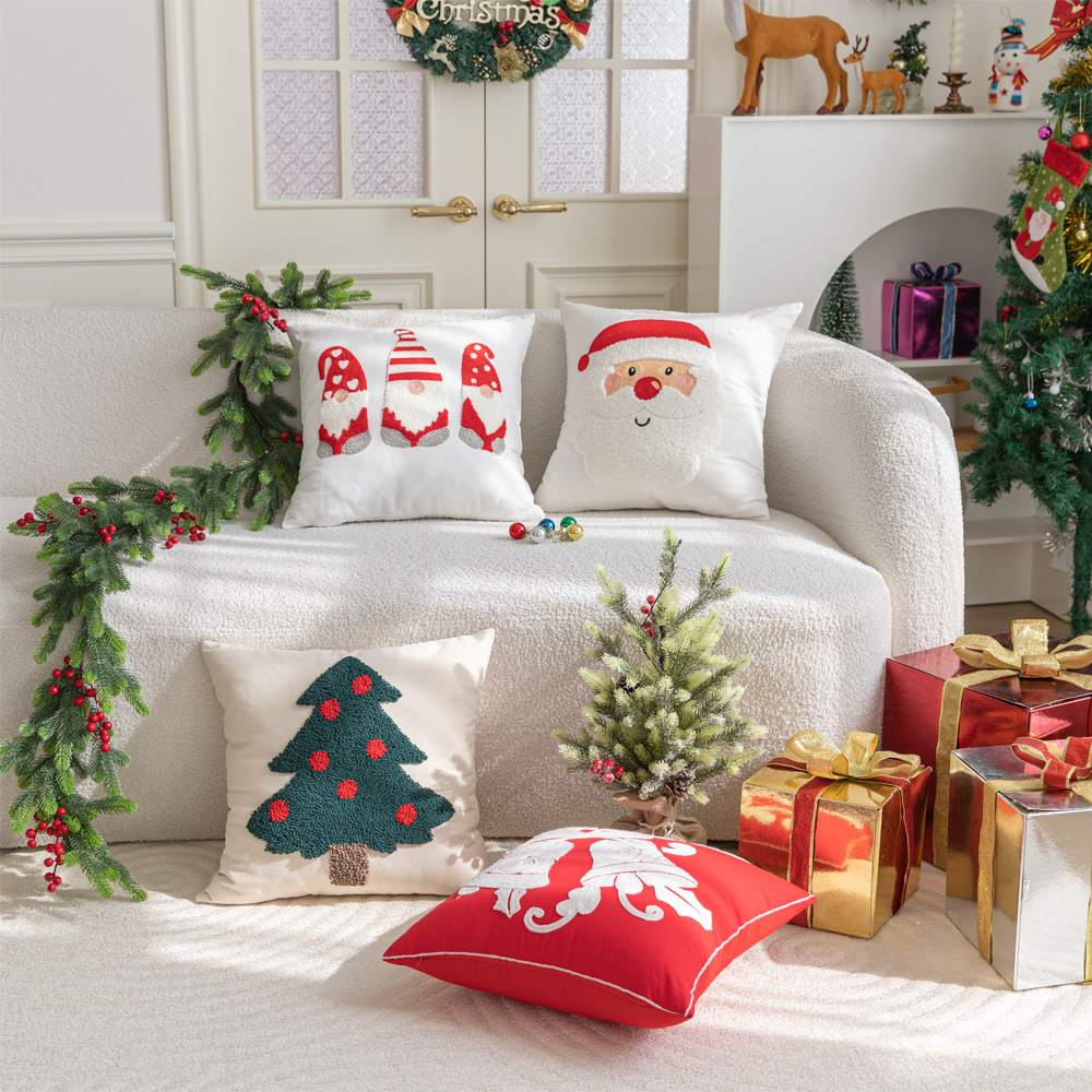 temu跨境热销圣诞树抱枕套,圣诞节客厅装饰刺绣靠垫套45*45cm