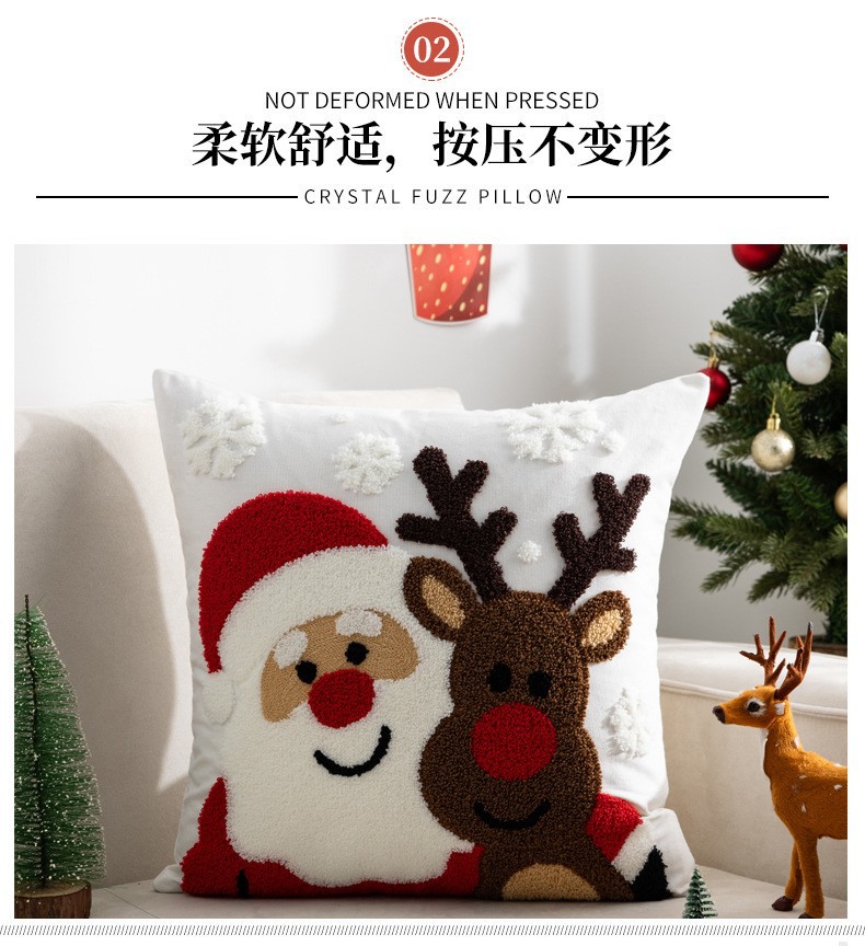 跨境抱枕套不含芯毛巾绣圣诞老人雪花靠枕套轻奢简约沙发靠垫套