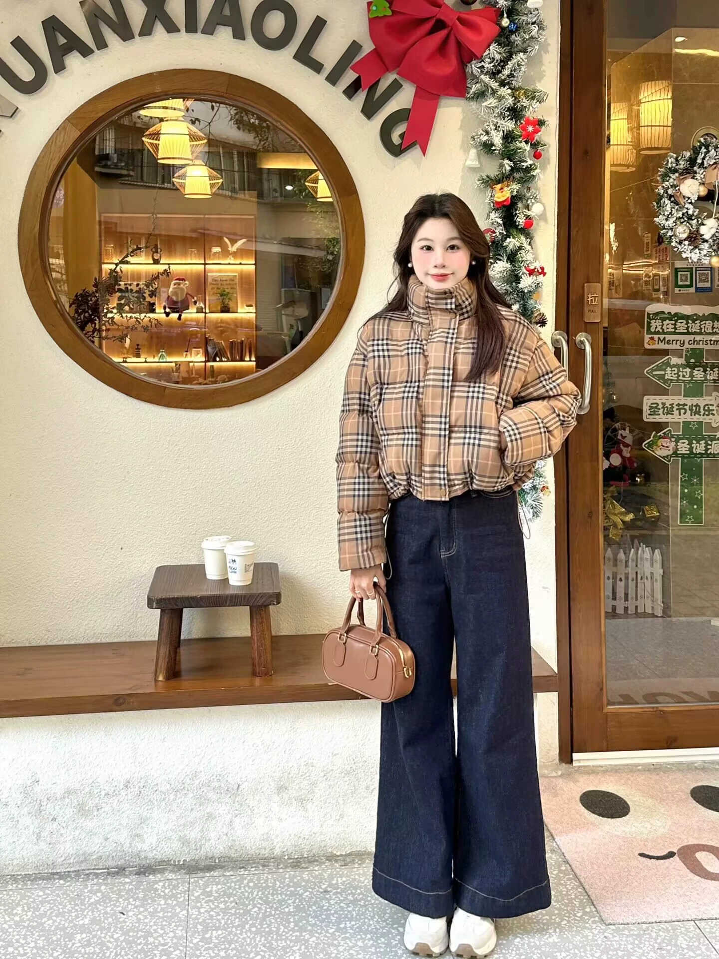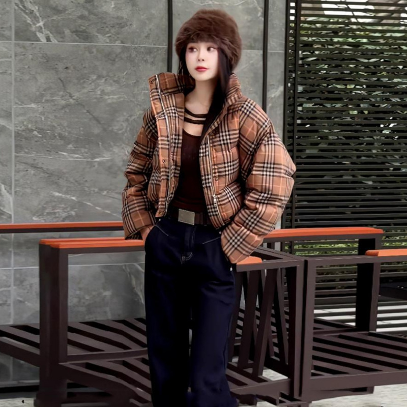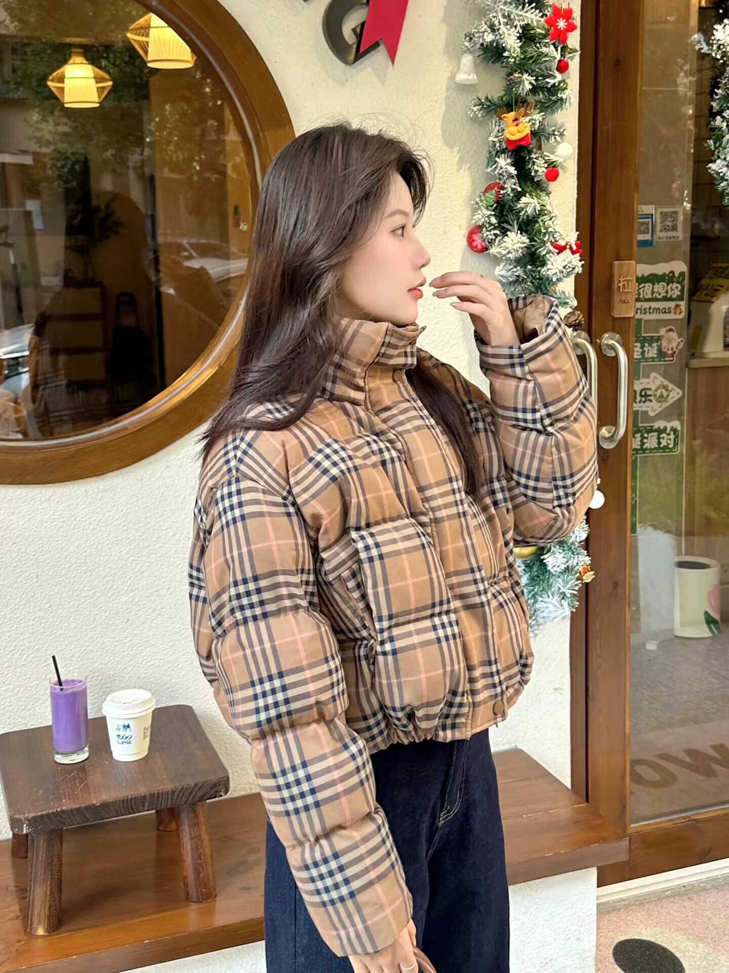 2025年冬季新款韩版格子小个子面包服加厚保暖短款时尚棉服女外套