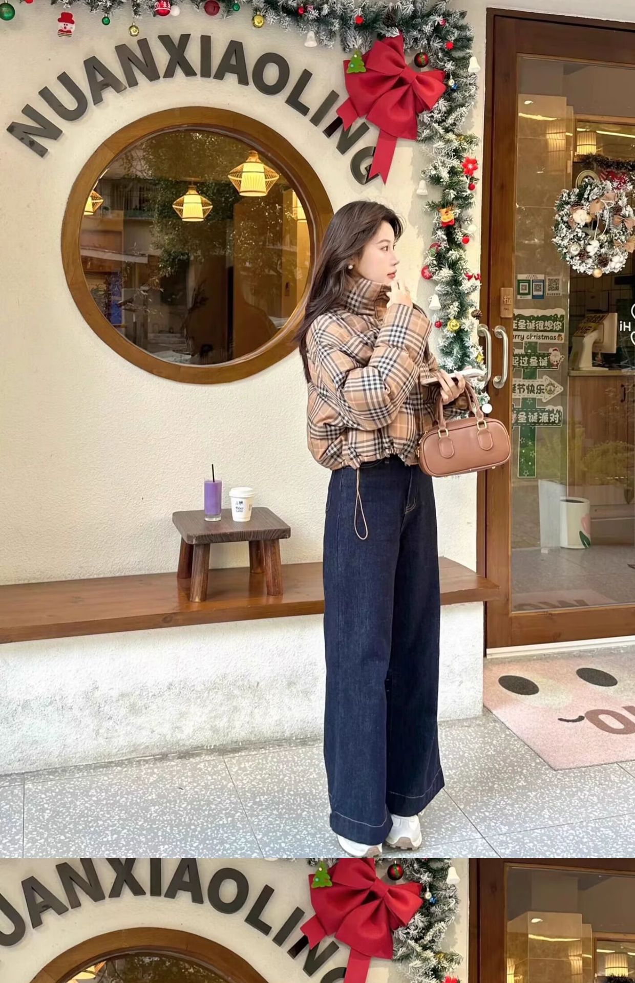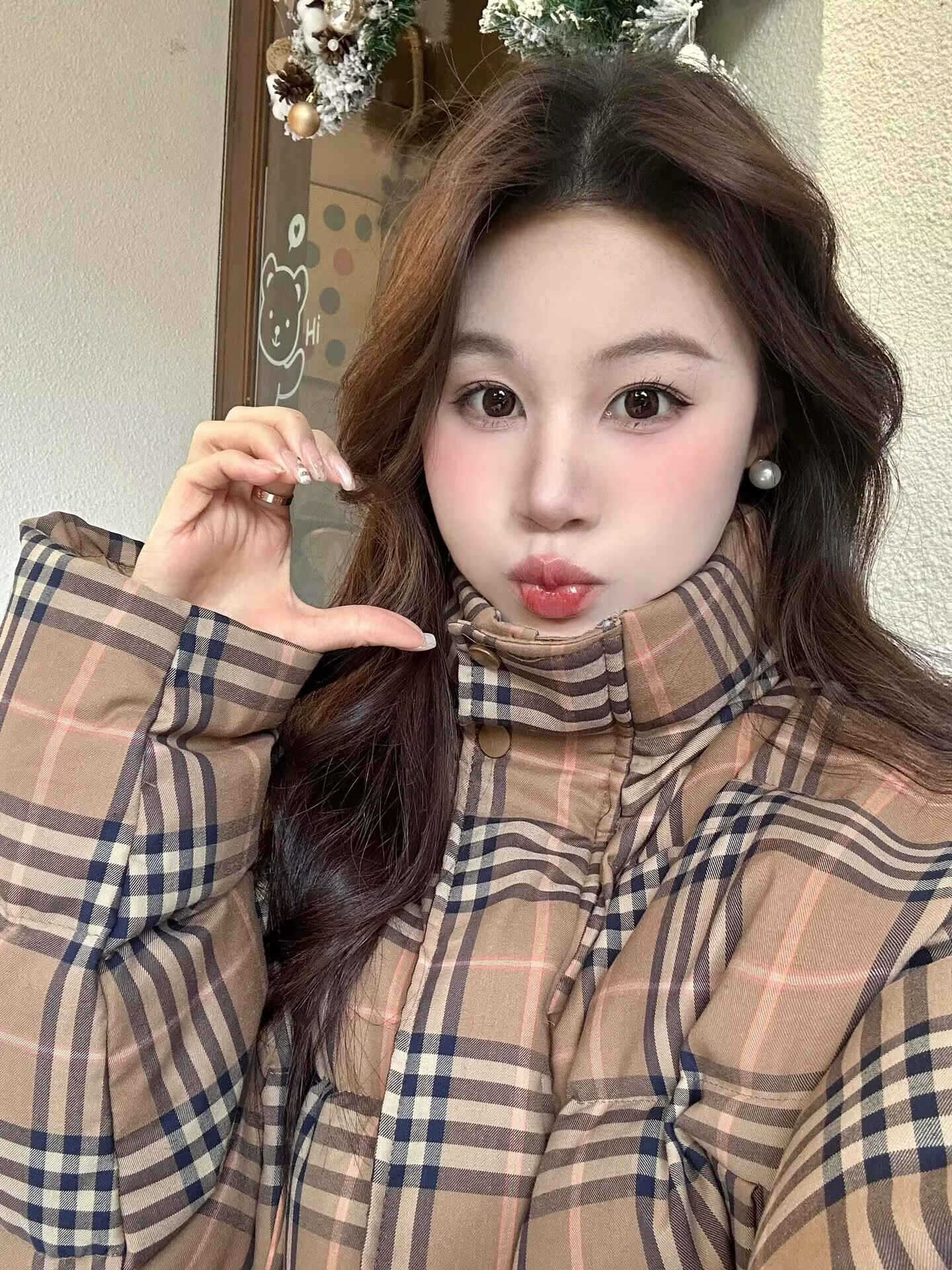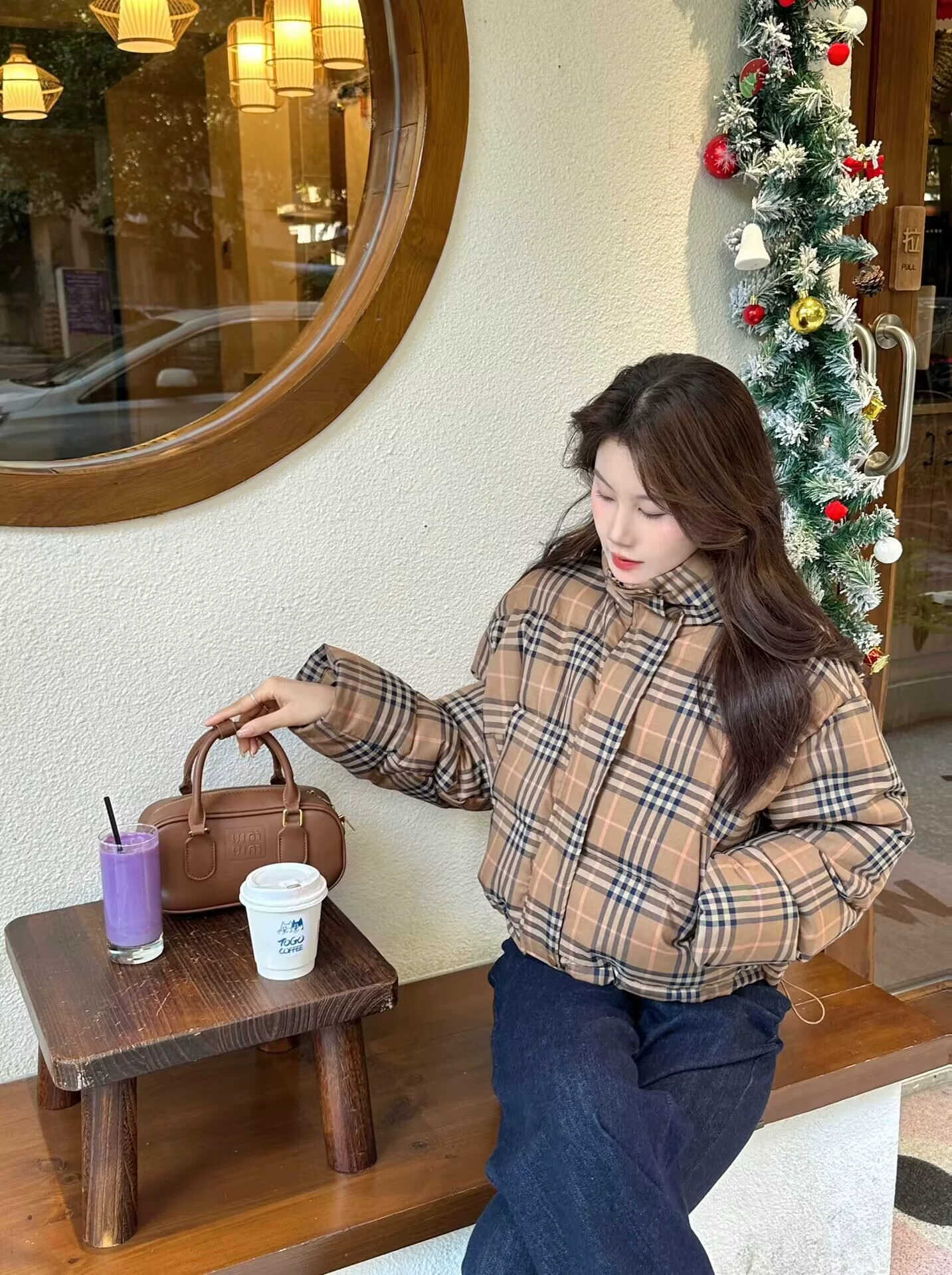 2025年冬季新款韩版格子小个子面包服加厚保暖短款时尚棉服女外套