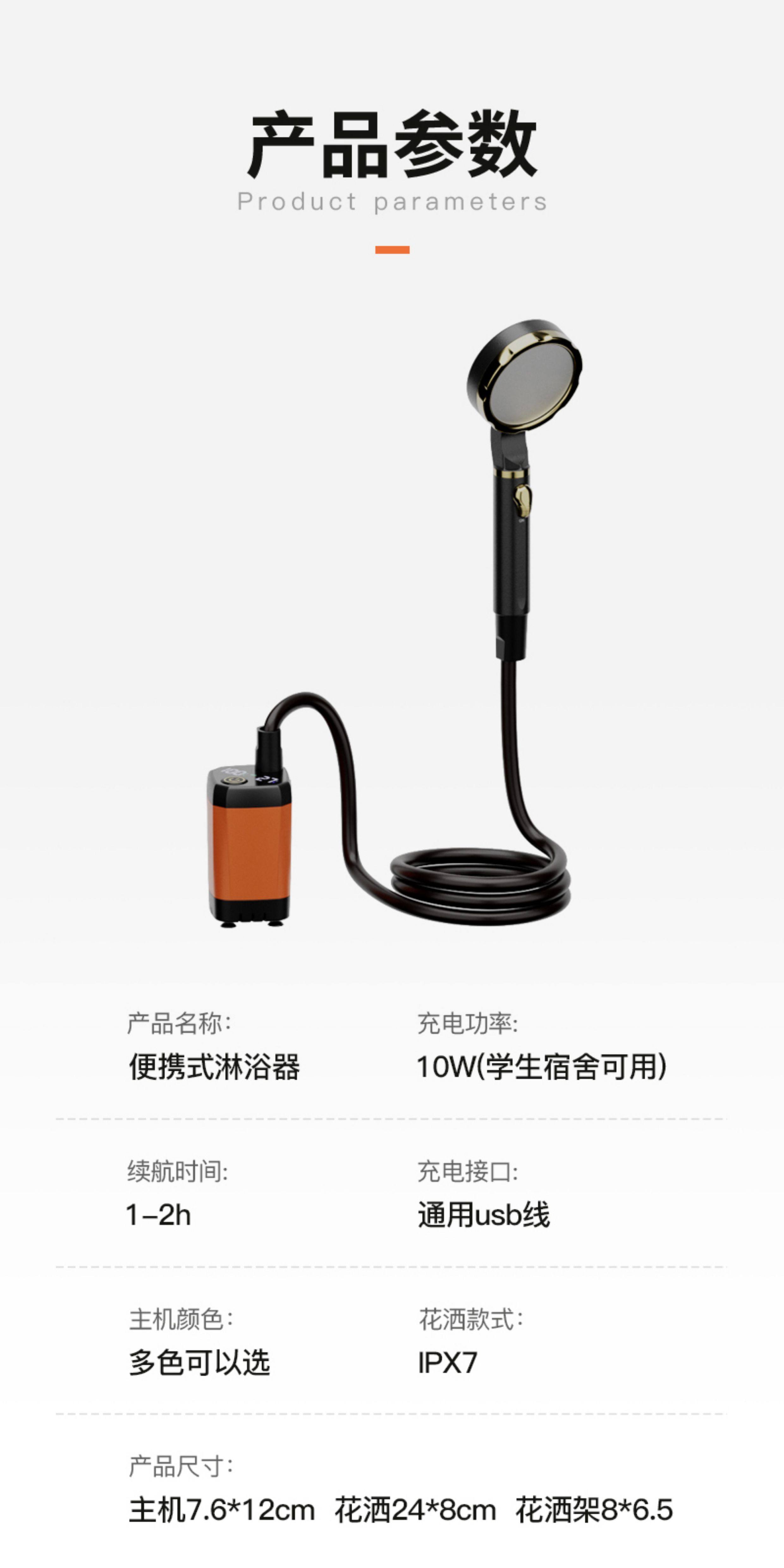 强续航电动淋浴花洒自吸泵喷头户外宿舍洗澡便携式淋浴器手持式