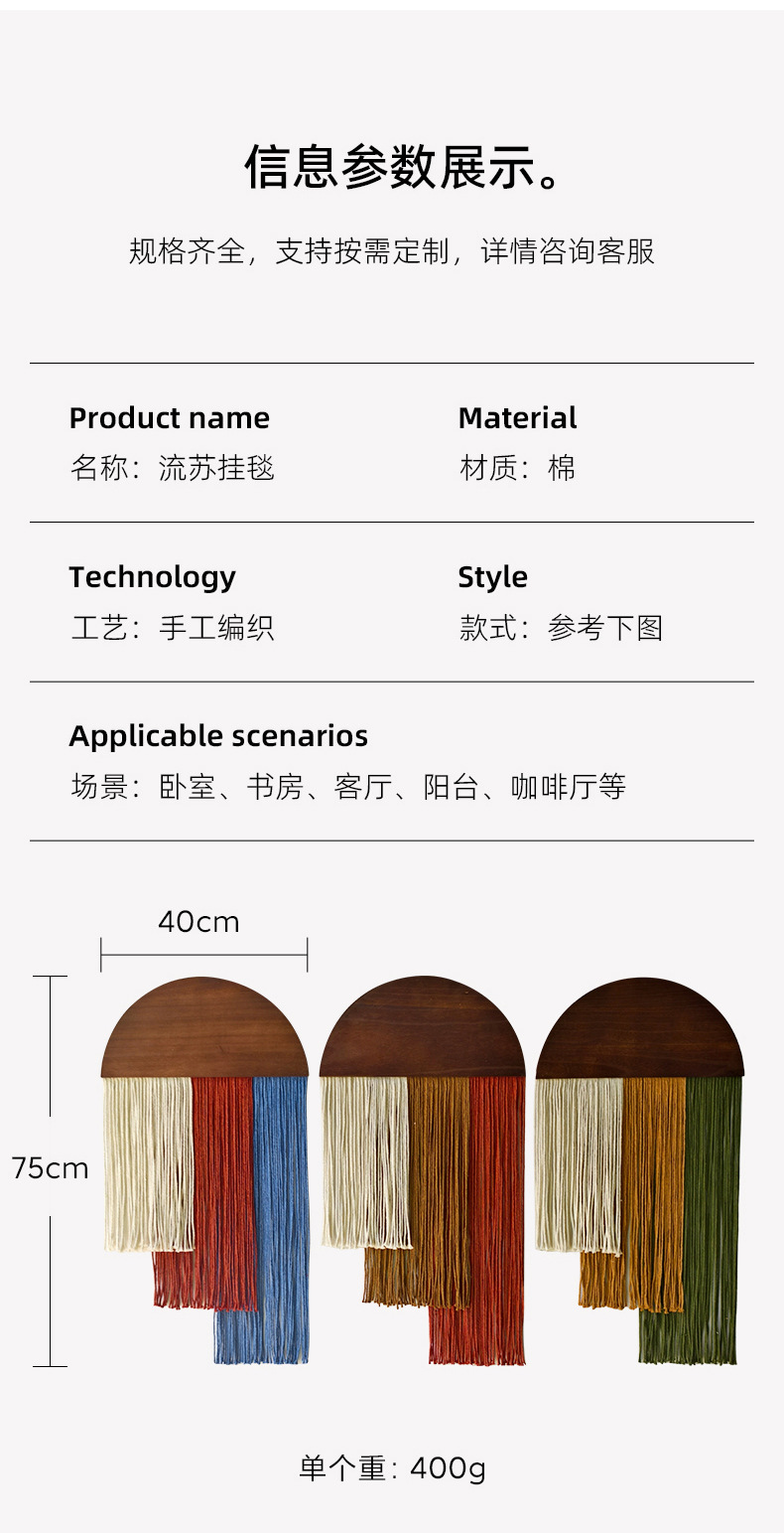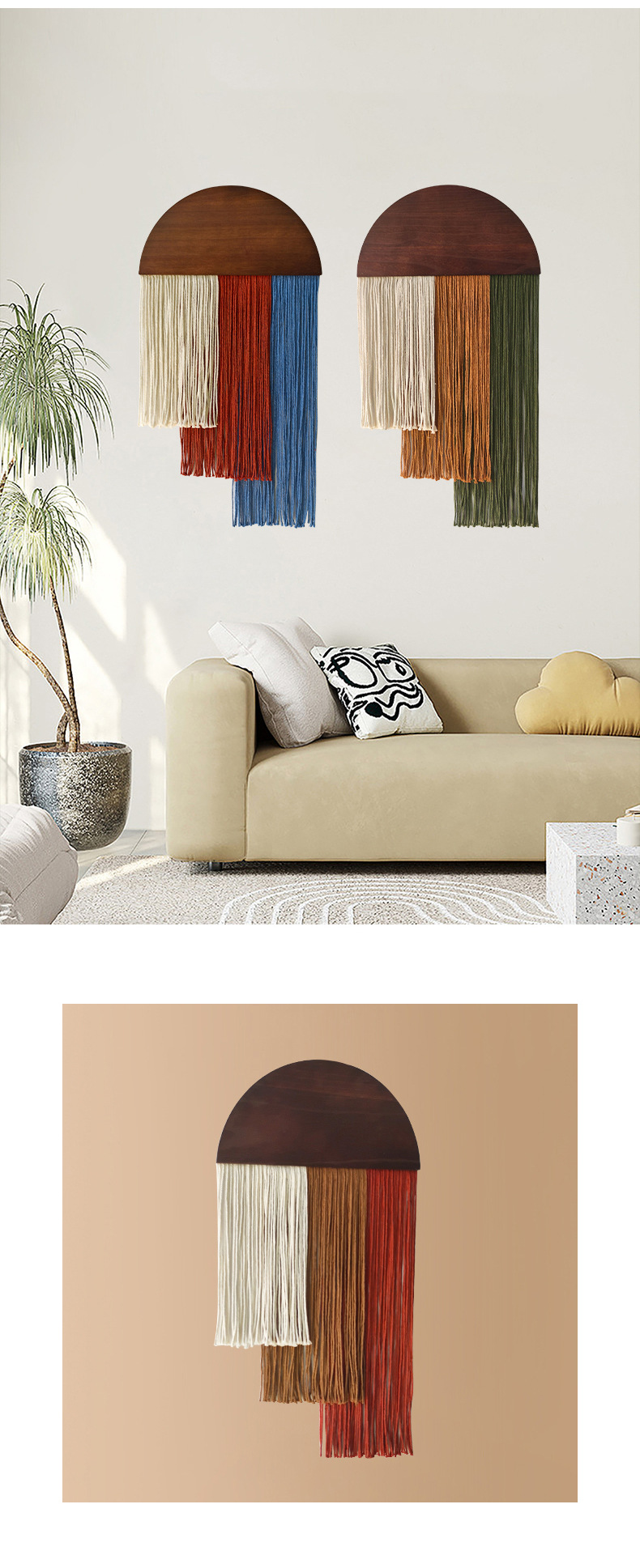 半圆木板流苏挂毯波西米亚棉线壁毯民宿客厅手工制作木板棉绳壁挂