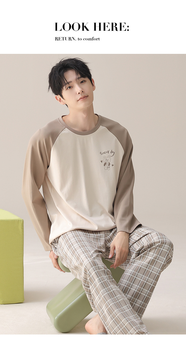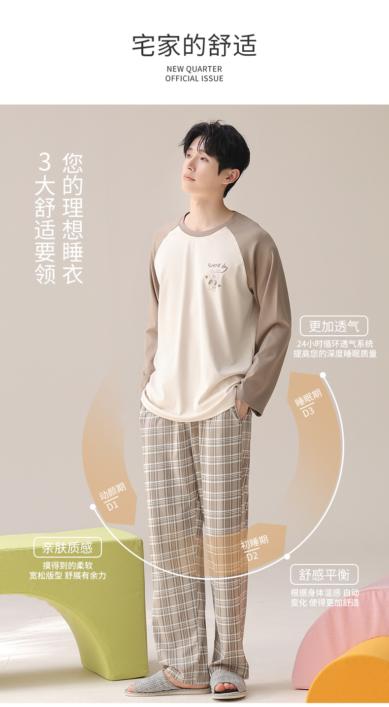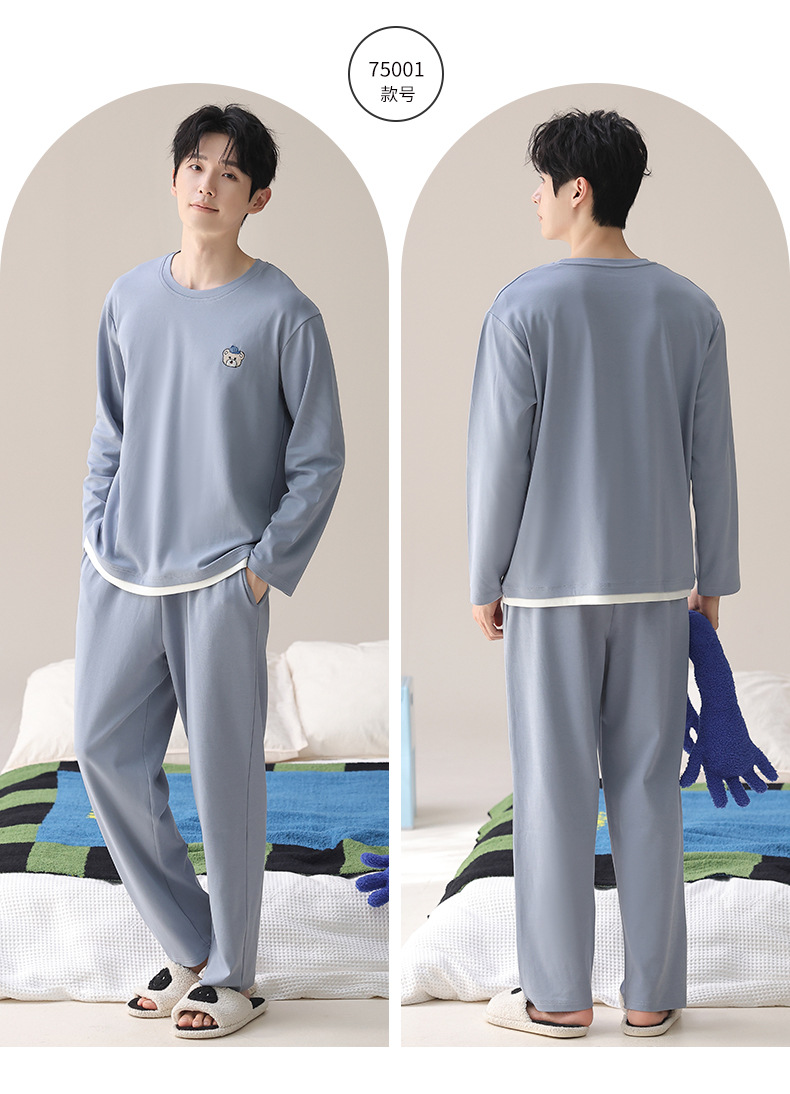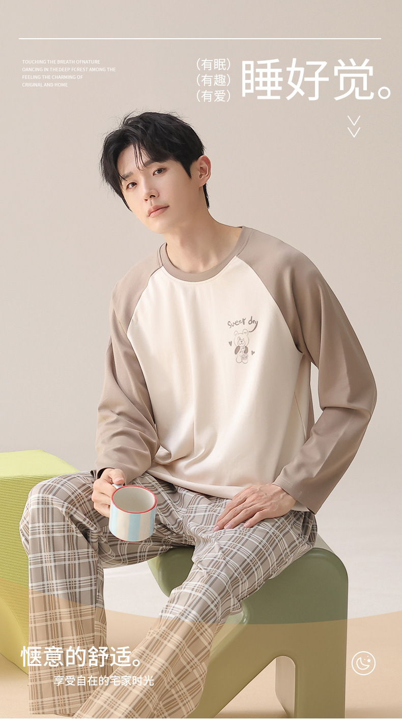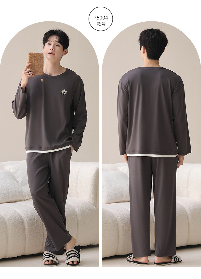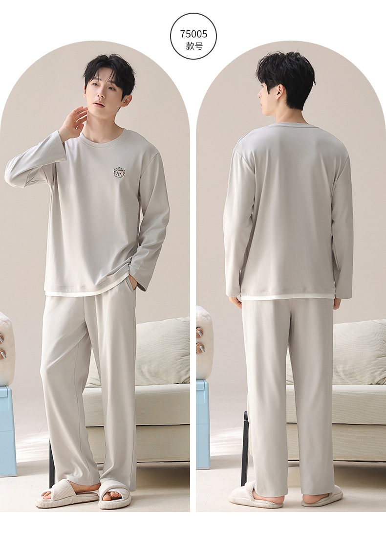 2025秋冬季长袖睡衣男轻爽舒柔感纯棉宽松开衫纯色休闲家居服套装