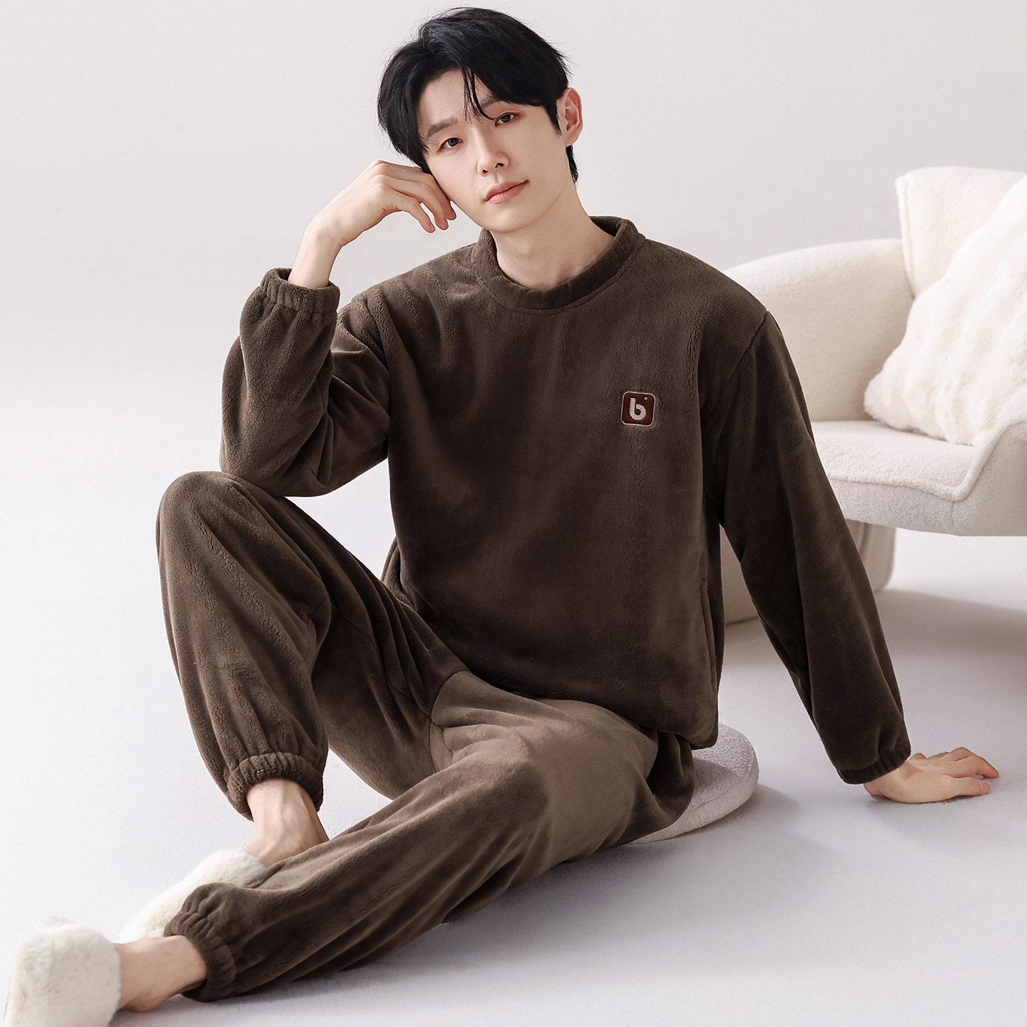 2025秋冬睡衣男保暖法兰绒加厚长袖圆领暖暖绒套装简约休闲家居服