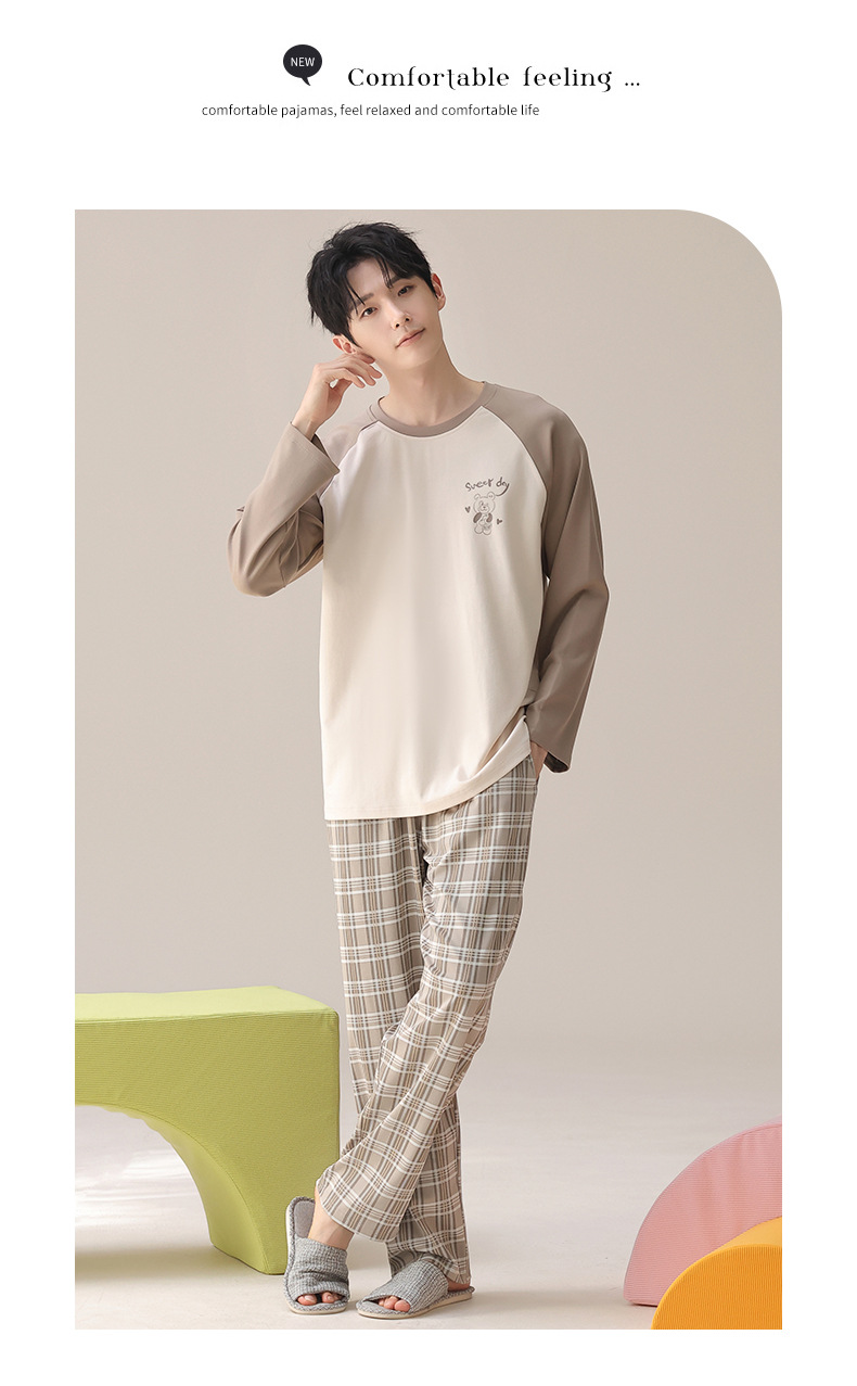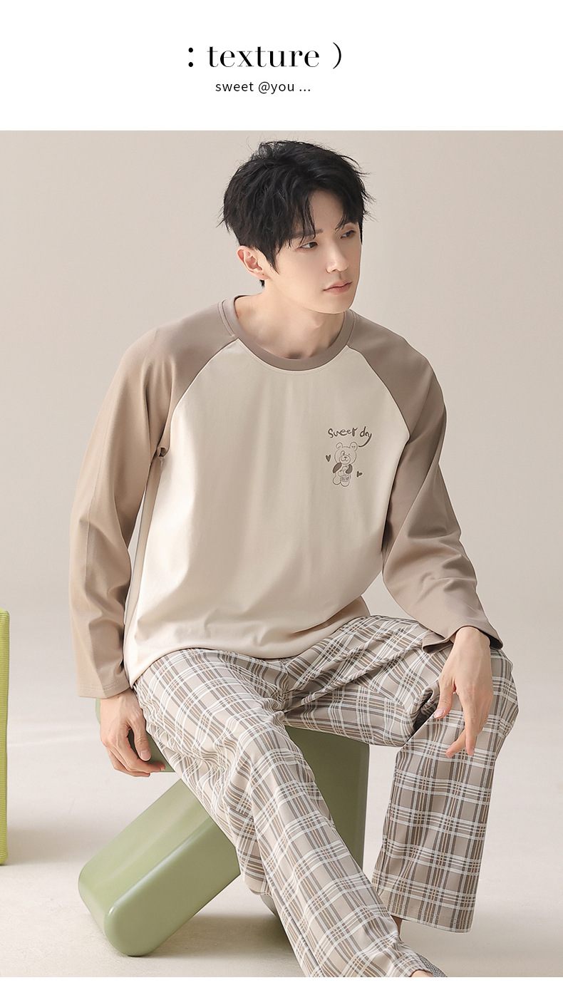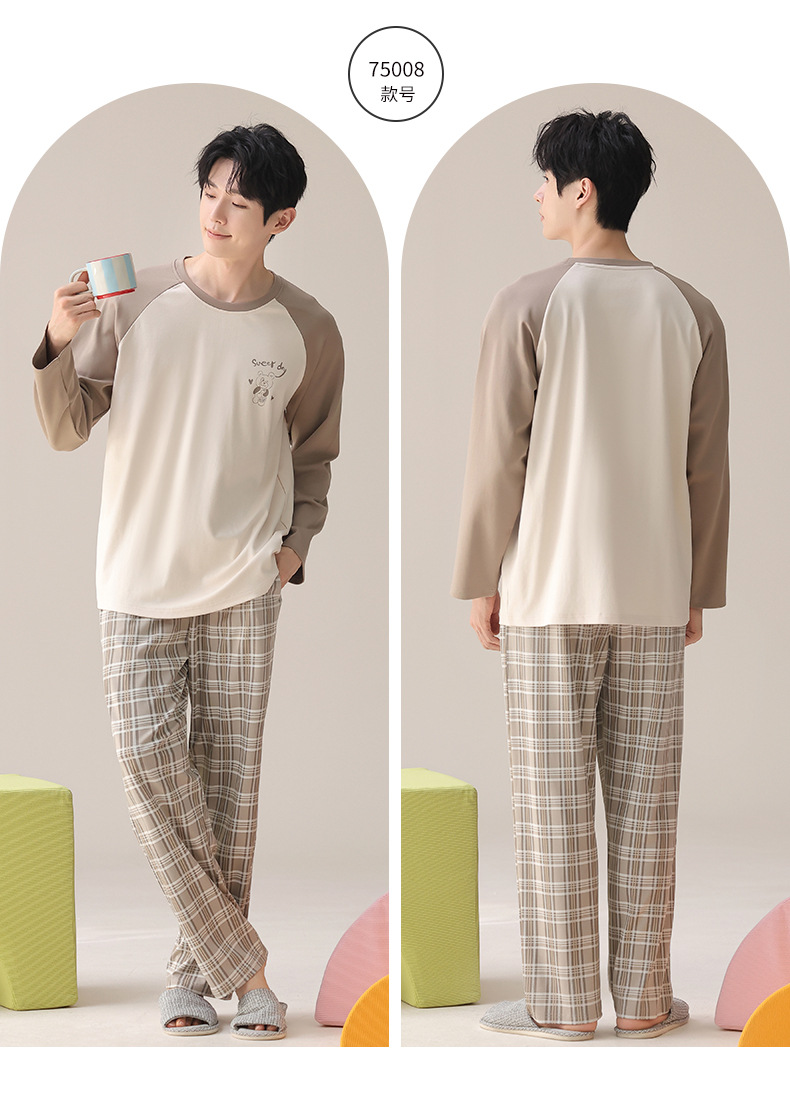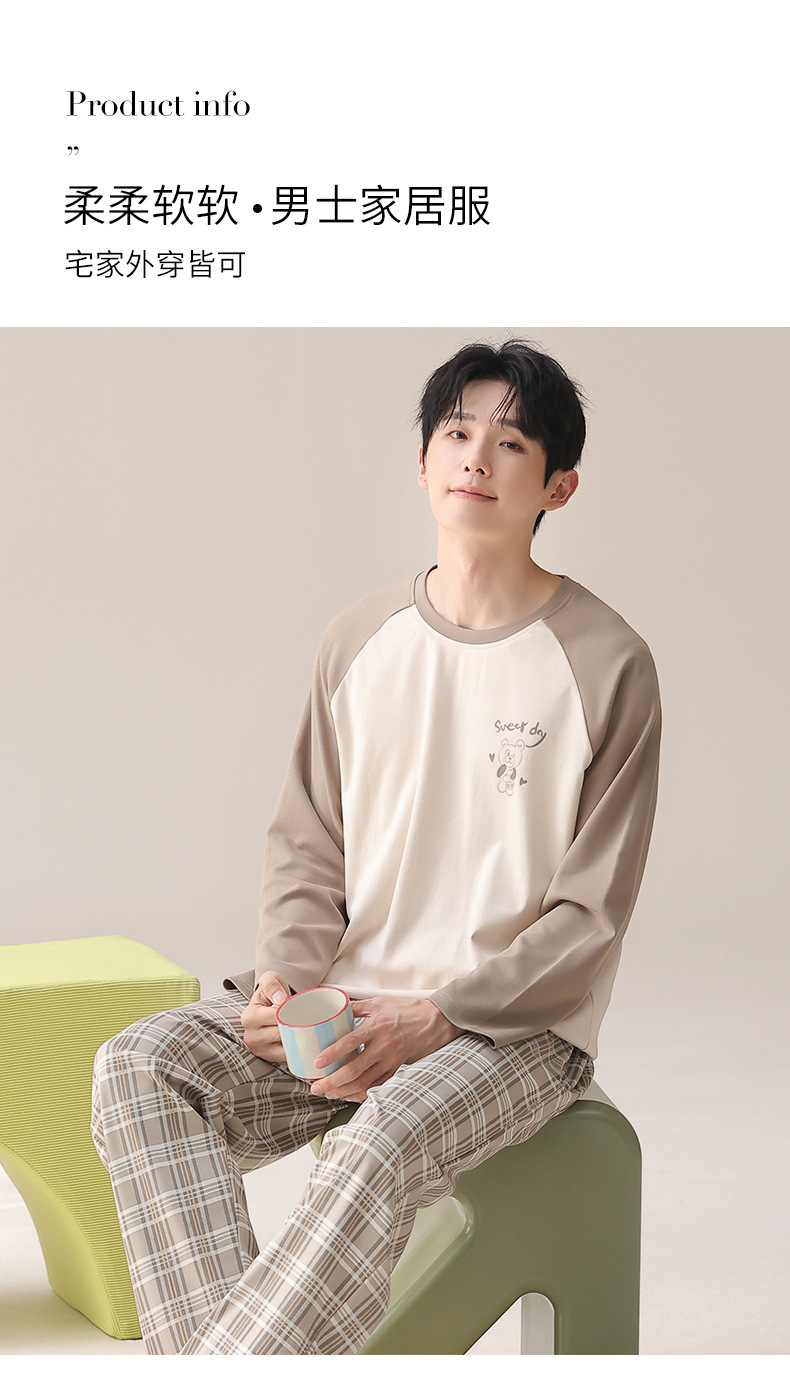 实体批发纯棉睡衣男士春秋季长袖长裤套头直播全棉家居服两件套装
