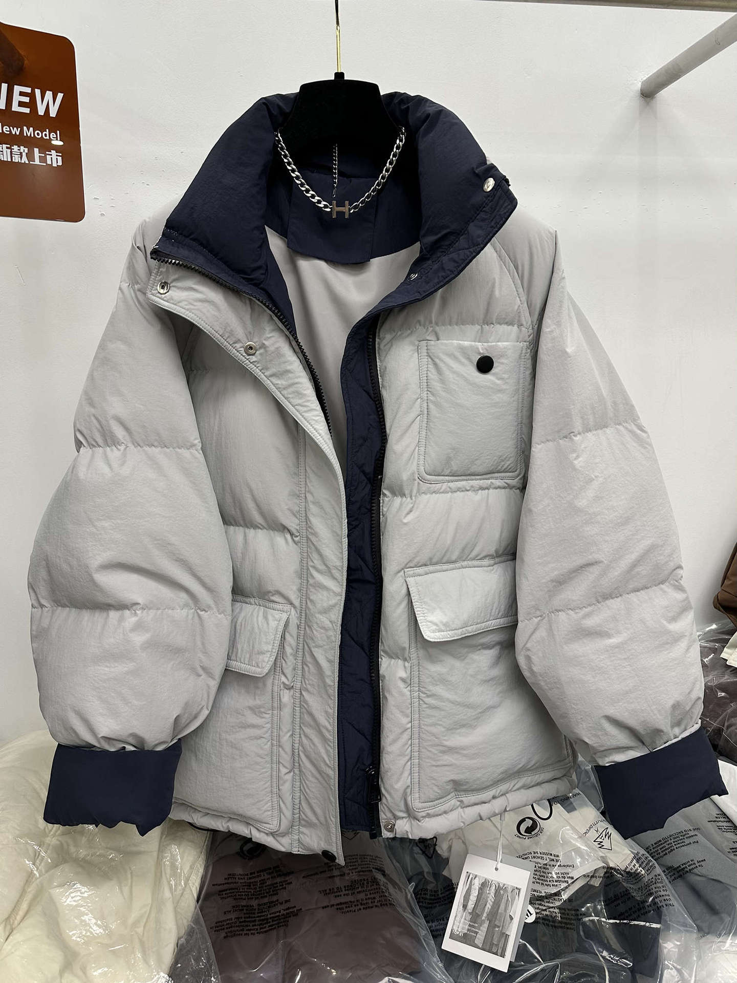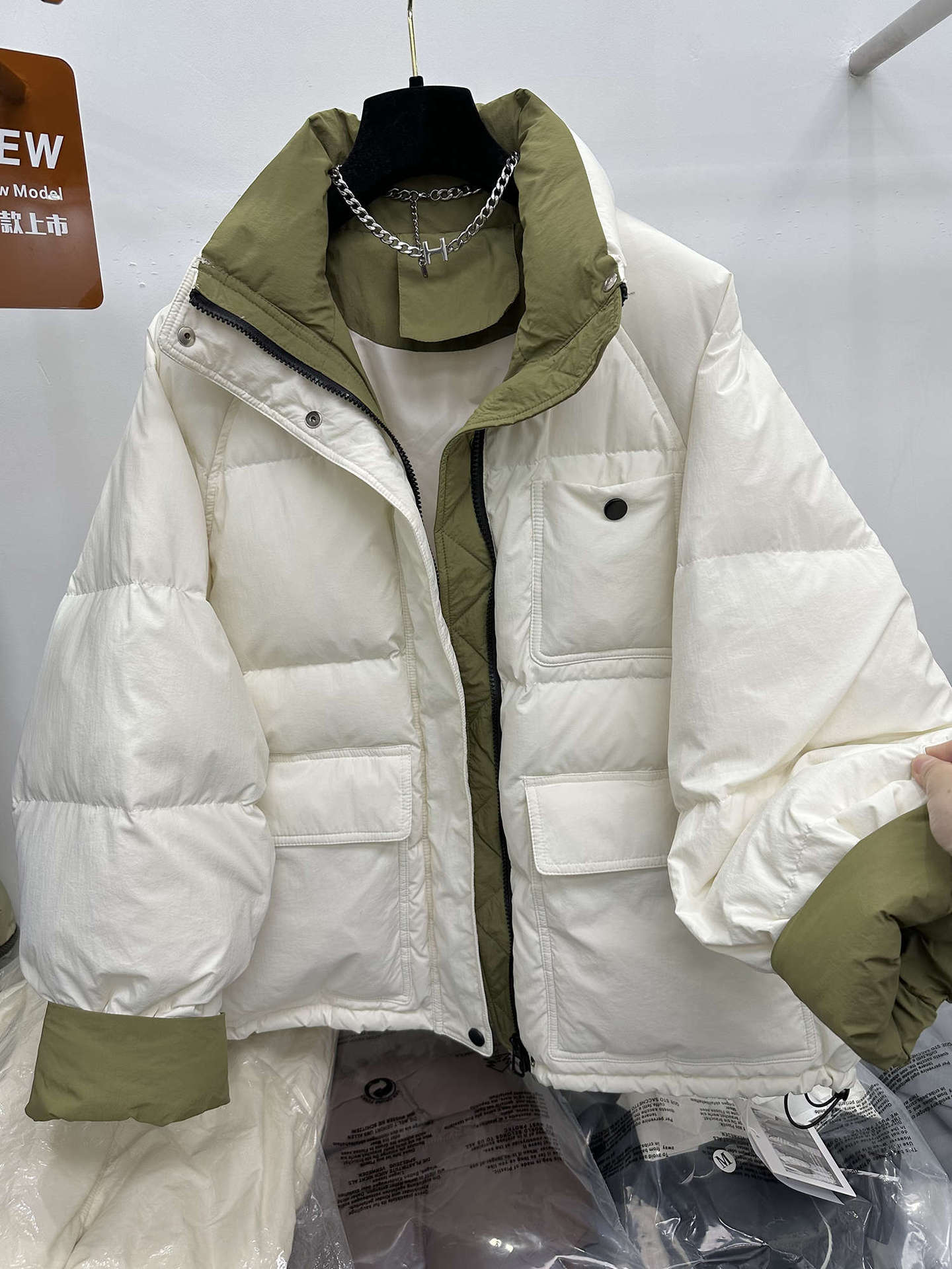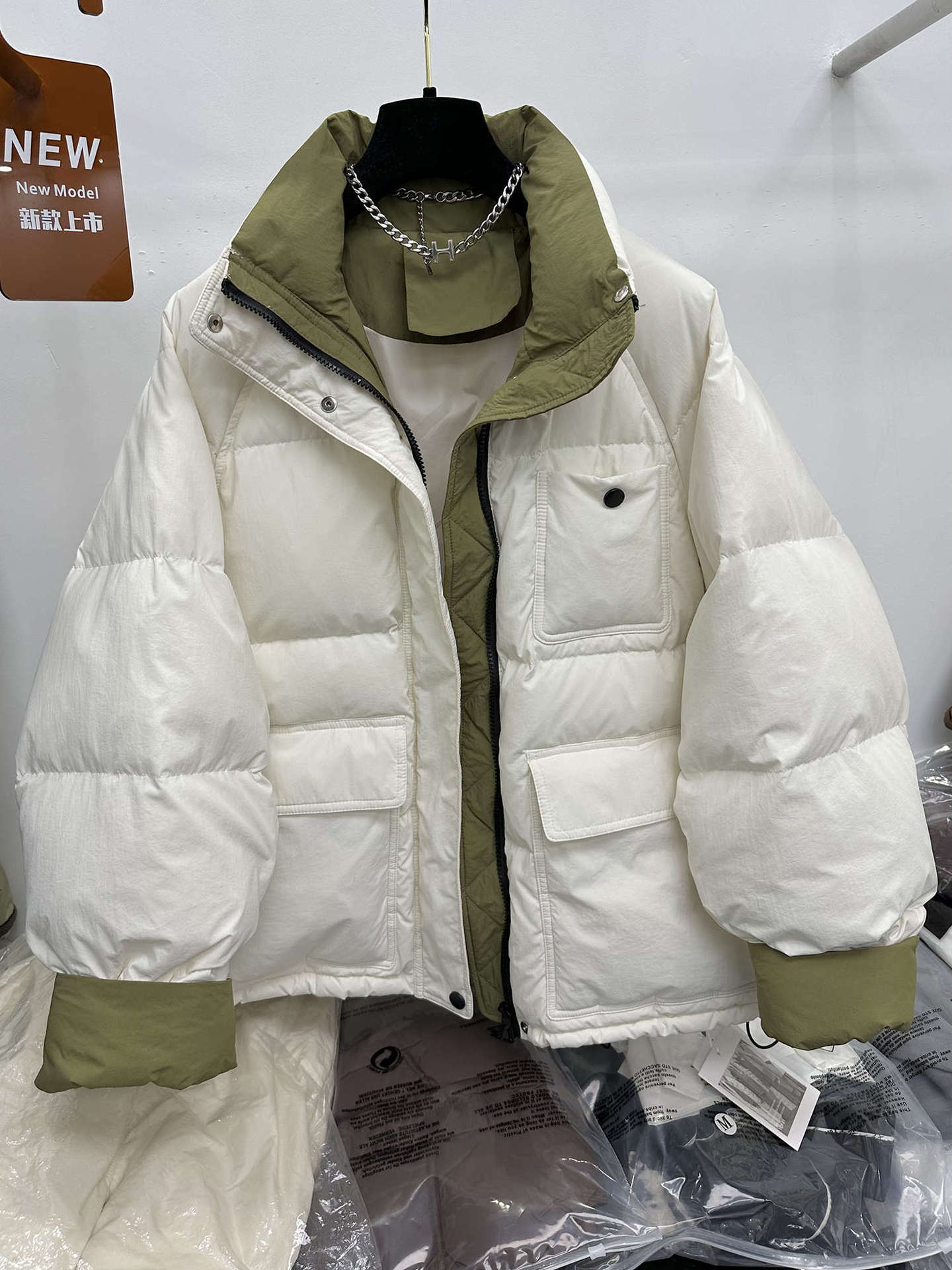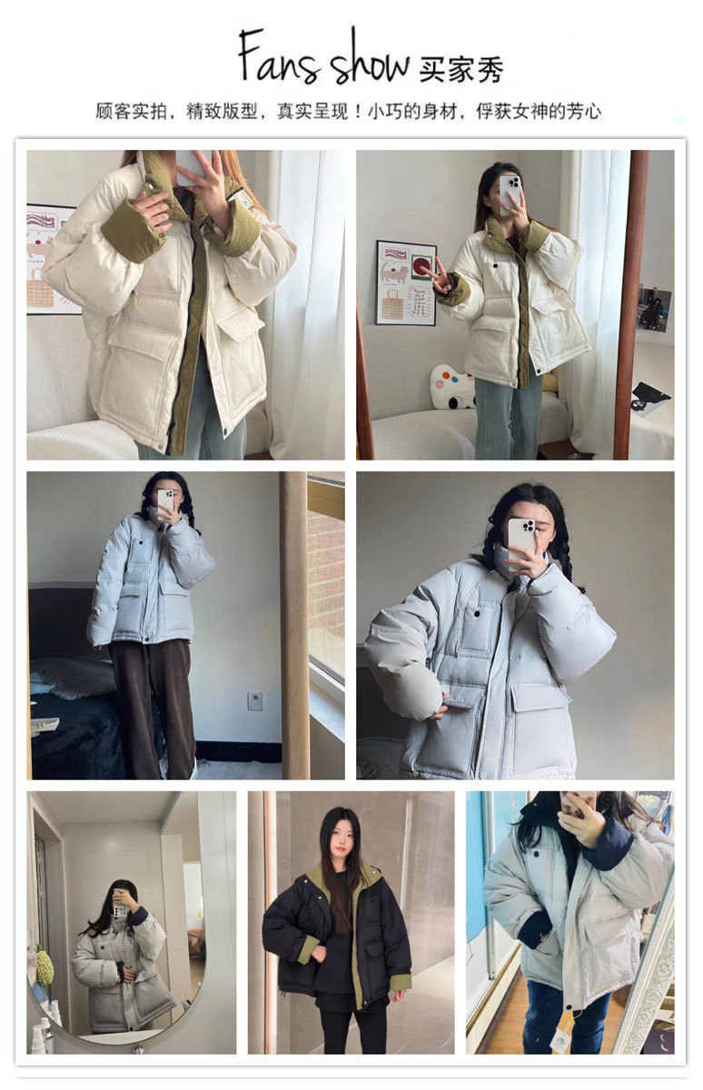 2025年冬季新款韩版立领撞色棉服女短款宽松高级感小个子加厚外套