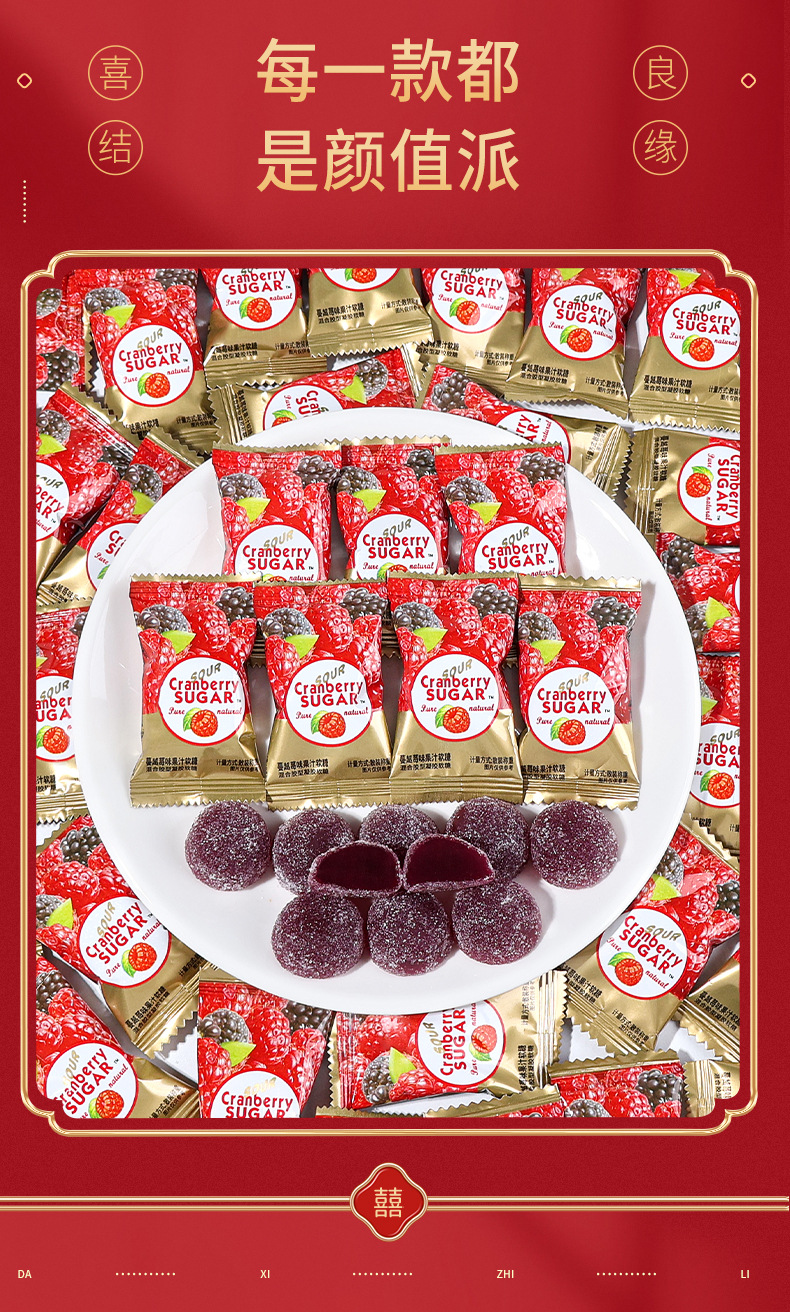 OCOCO蔓越莓味软糖散装结婚礼喜糖伴手礼糖果酸甜软糖休闲小零食