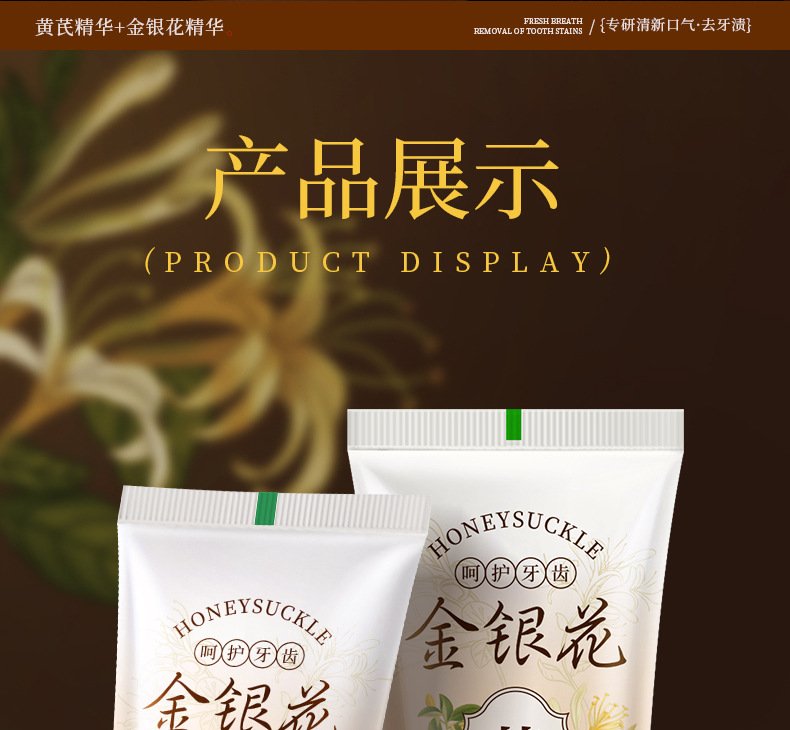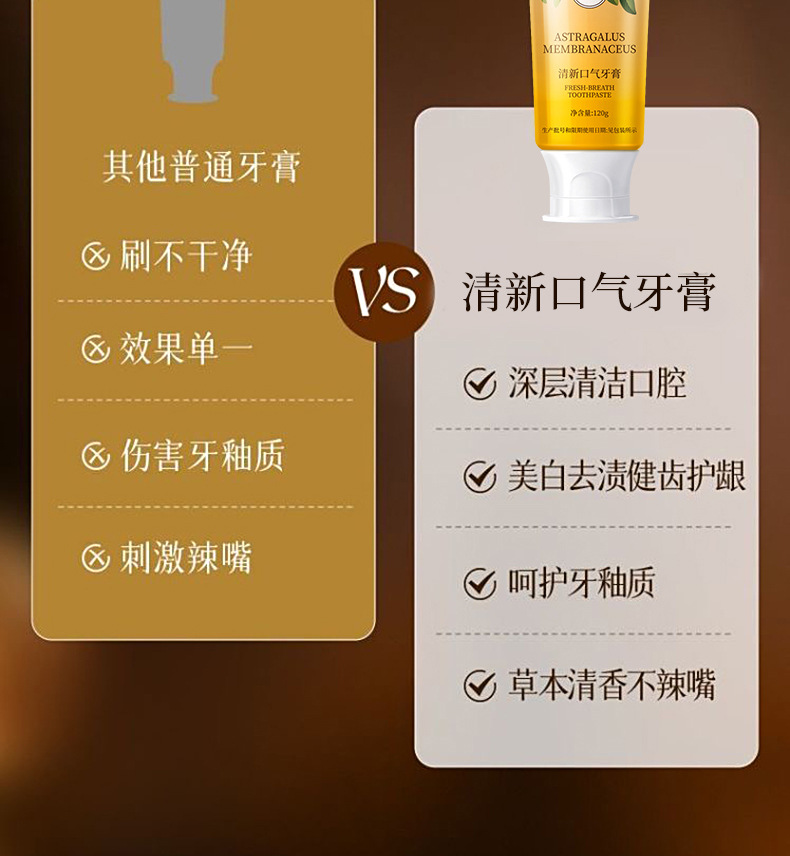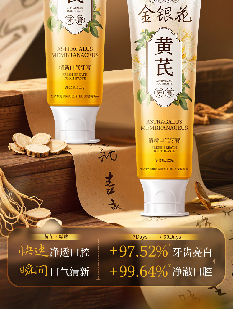 【新品热销】黄芪金银花牙膏清新口气120g美白去渍去黄牙膏现货