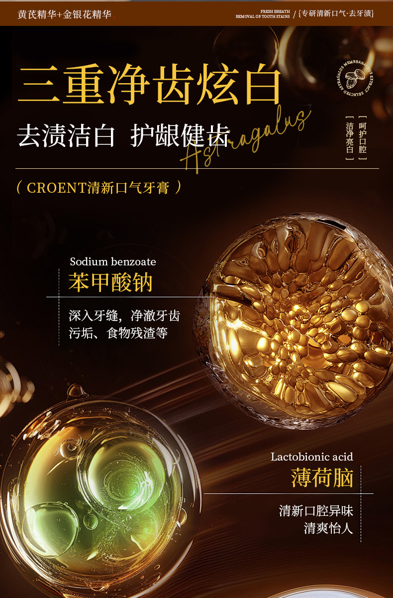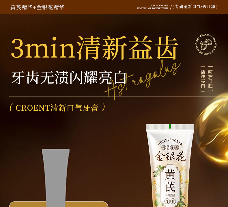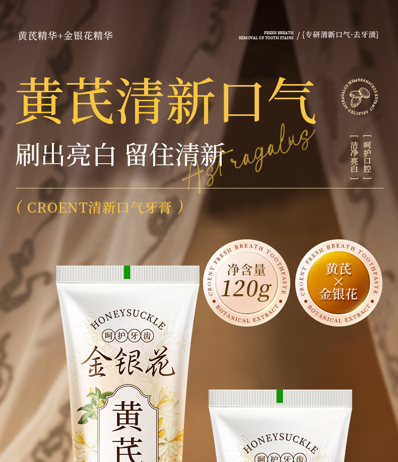 Croent黄芪金银花清新口气牙膏口腔护理减轻牙渍口臭厂家批发120g
