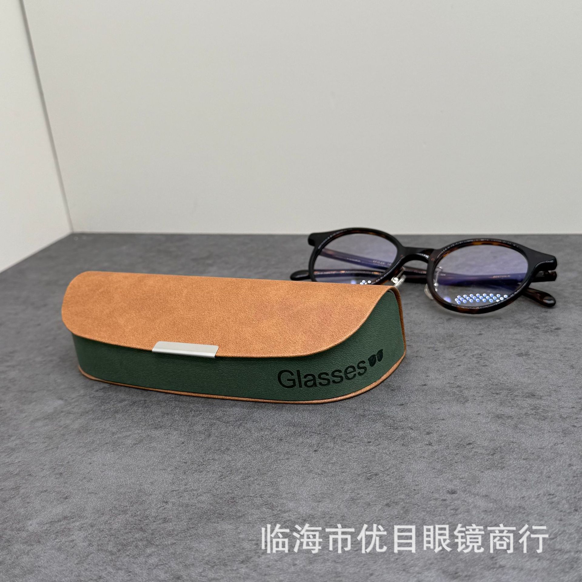 新款压变高级感皮质手工眼镜盒 太阳镜近视镜盒 厂家批发可印logo