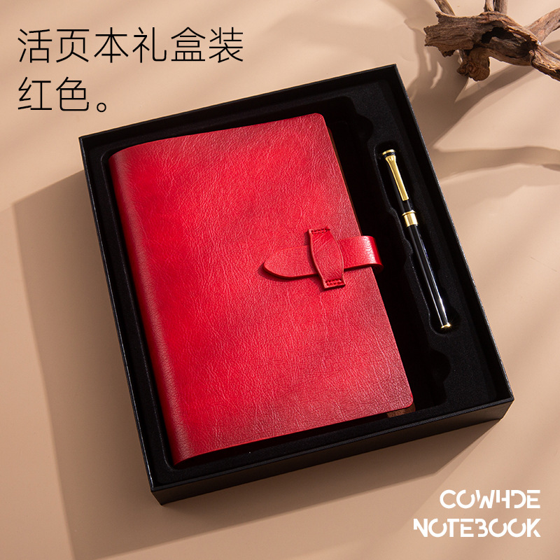 ノートブックギフトボックスセットソフトレザーメモ帳レトロ牛革A5取り外し可能なルーズリーフノート印刷ロゴ付きビジネスカスタマイズ