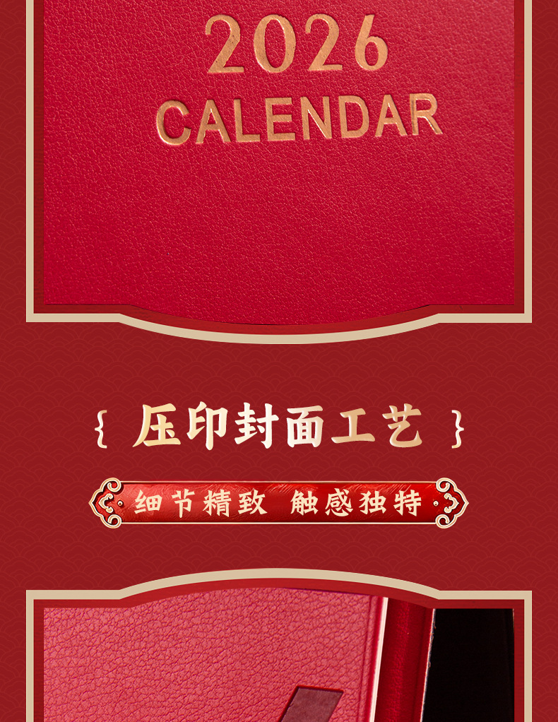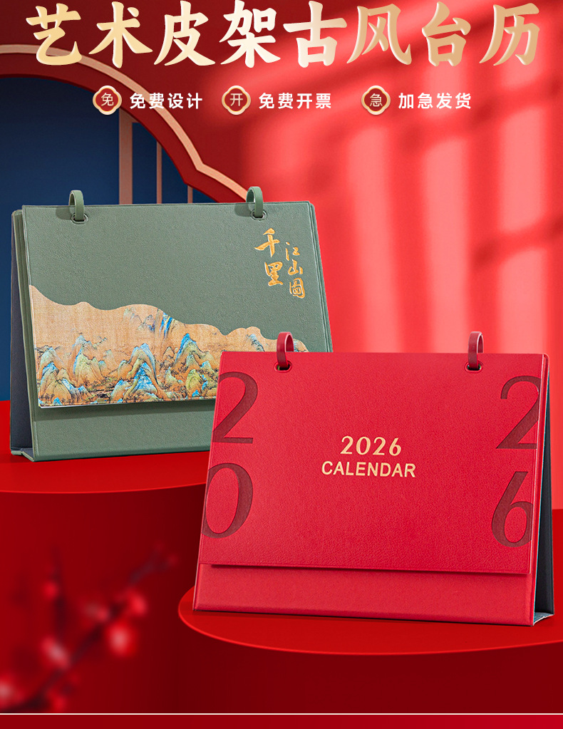 厂家货源2026年新款台历三折皮记事月历桌面摆件中国风日历印logo