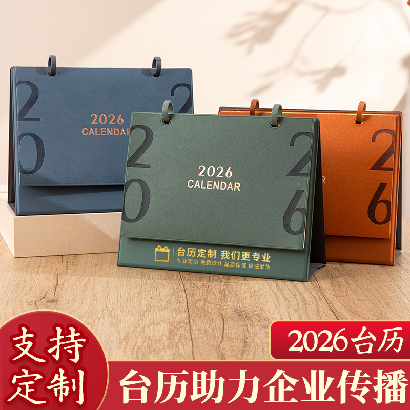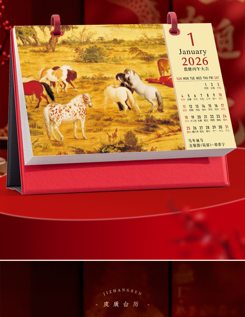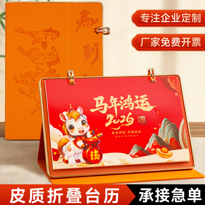 2026年企业台历定制创意广告商务办公伴手礼桌面摆件马年皮质月历