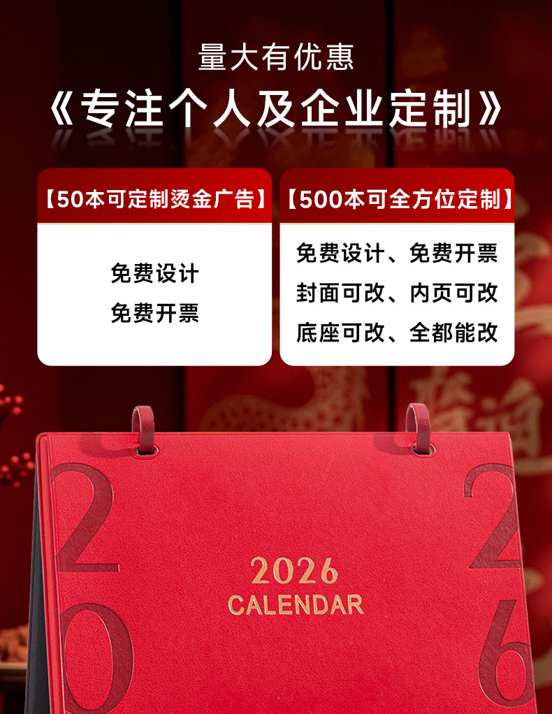 2026台历马年新款月历办公桌面摆件活动日历企业年会广告可印LOGO