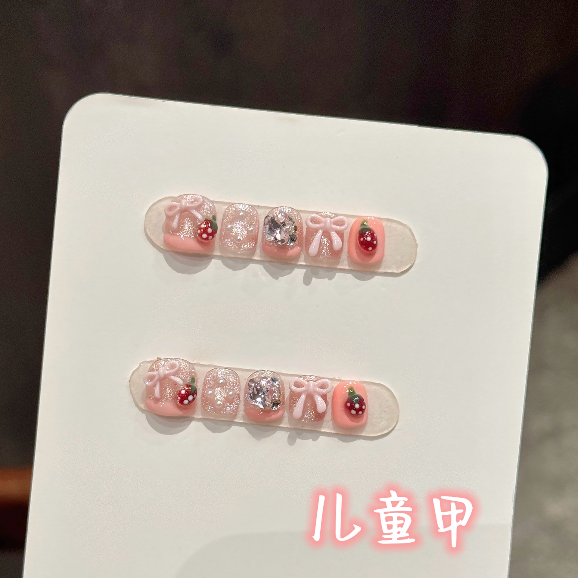 艺禾穿戴甲【儿童甲】小朋友美甲卡通可爱立体捏捏草莓3-12岁美甲