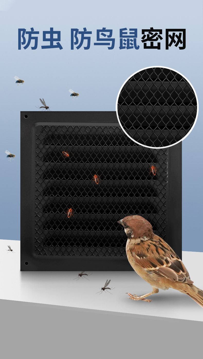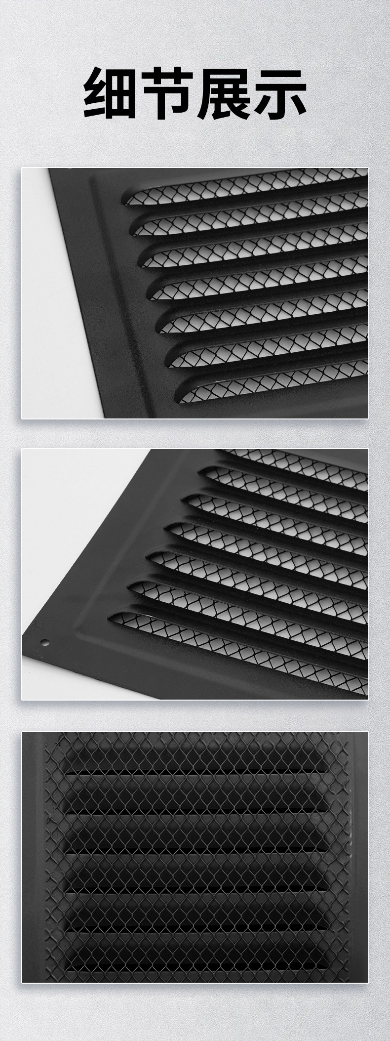 外墙阁楼黑色平口方形百叶透气孔排风管排风金属格栅通风口出风口