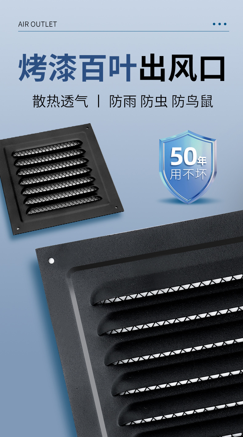 地下室车库卫生间阁楼方形百叶透气排风口金属格栅通风口出风口