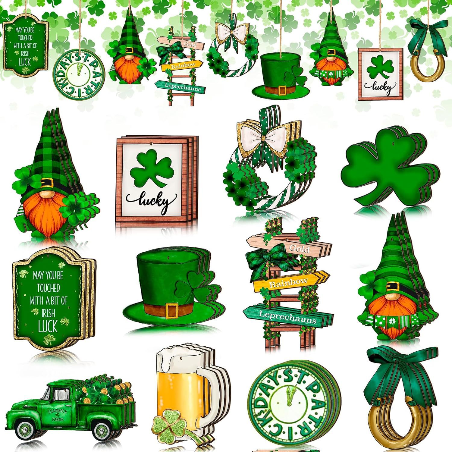 跨境独立站新品圣帕特里克节木质装饰卡车小矮人时钟帽子派对装饰