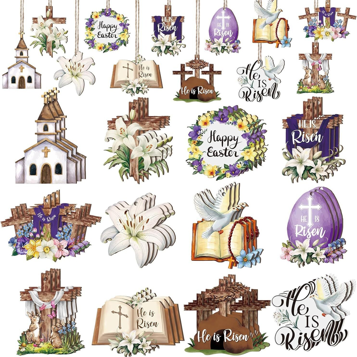 24件套悬挂装饰套装春季装饰吊坠木制复活节装饰品兔子复活节木质