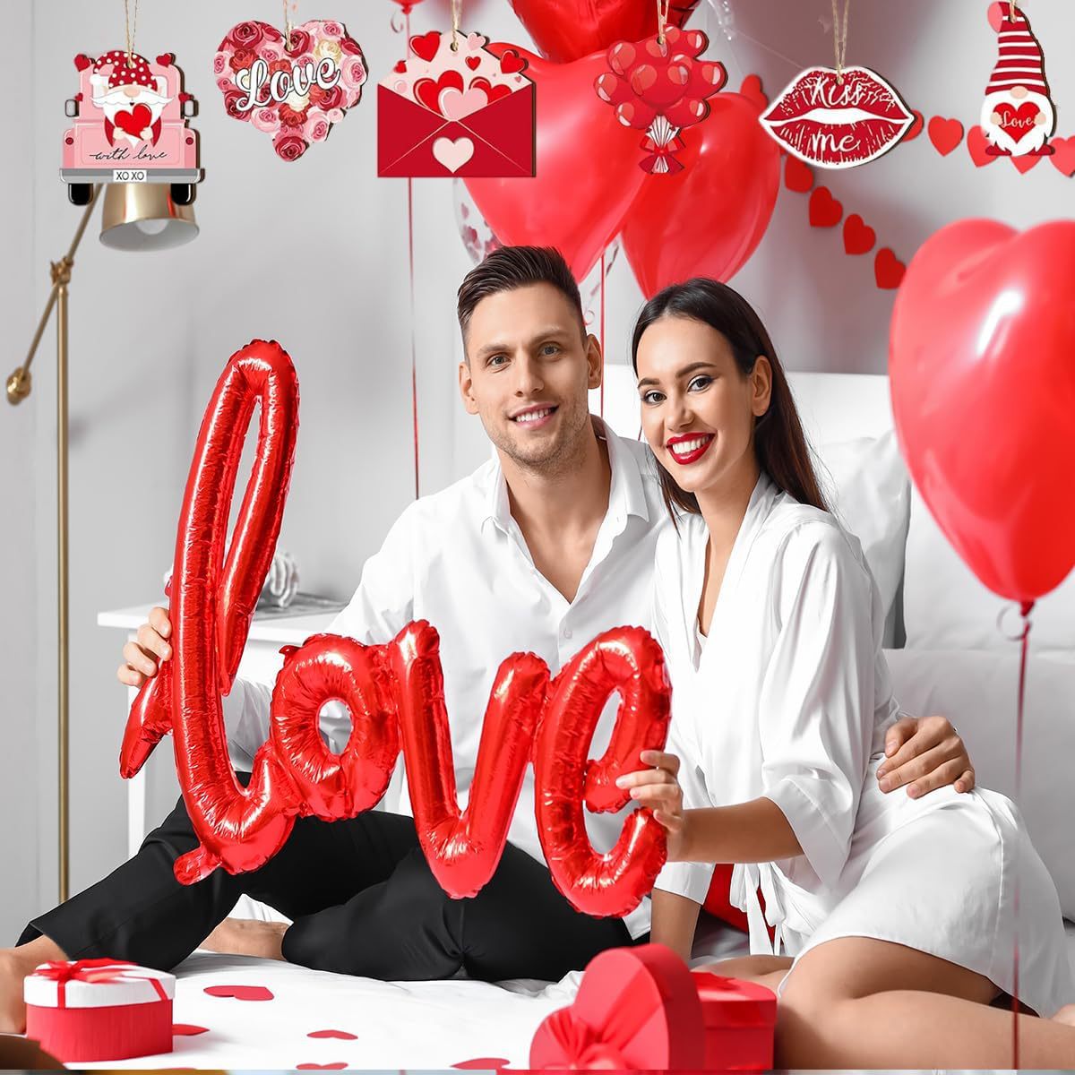 情人节木质饰品情人节装饰品爱心气球挂件情侣派对粉色小矮人饰品