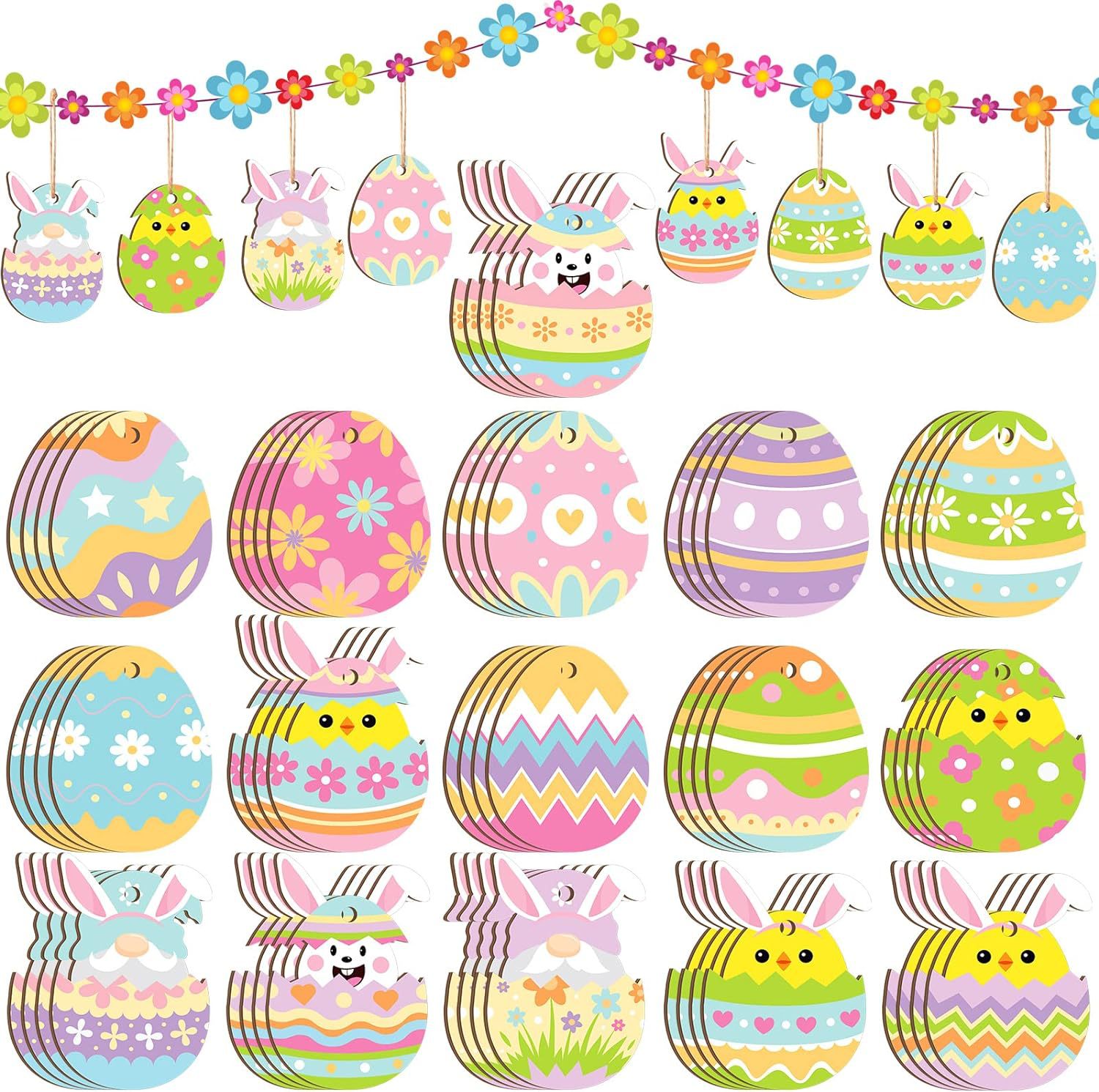 イースター木製ペンダントイースター装飾木壁教室ホームパーティー装飾ロープ付き