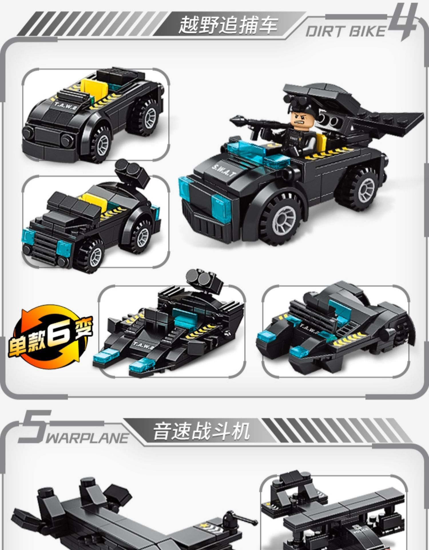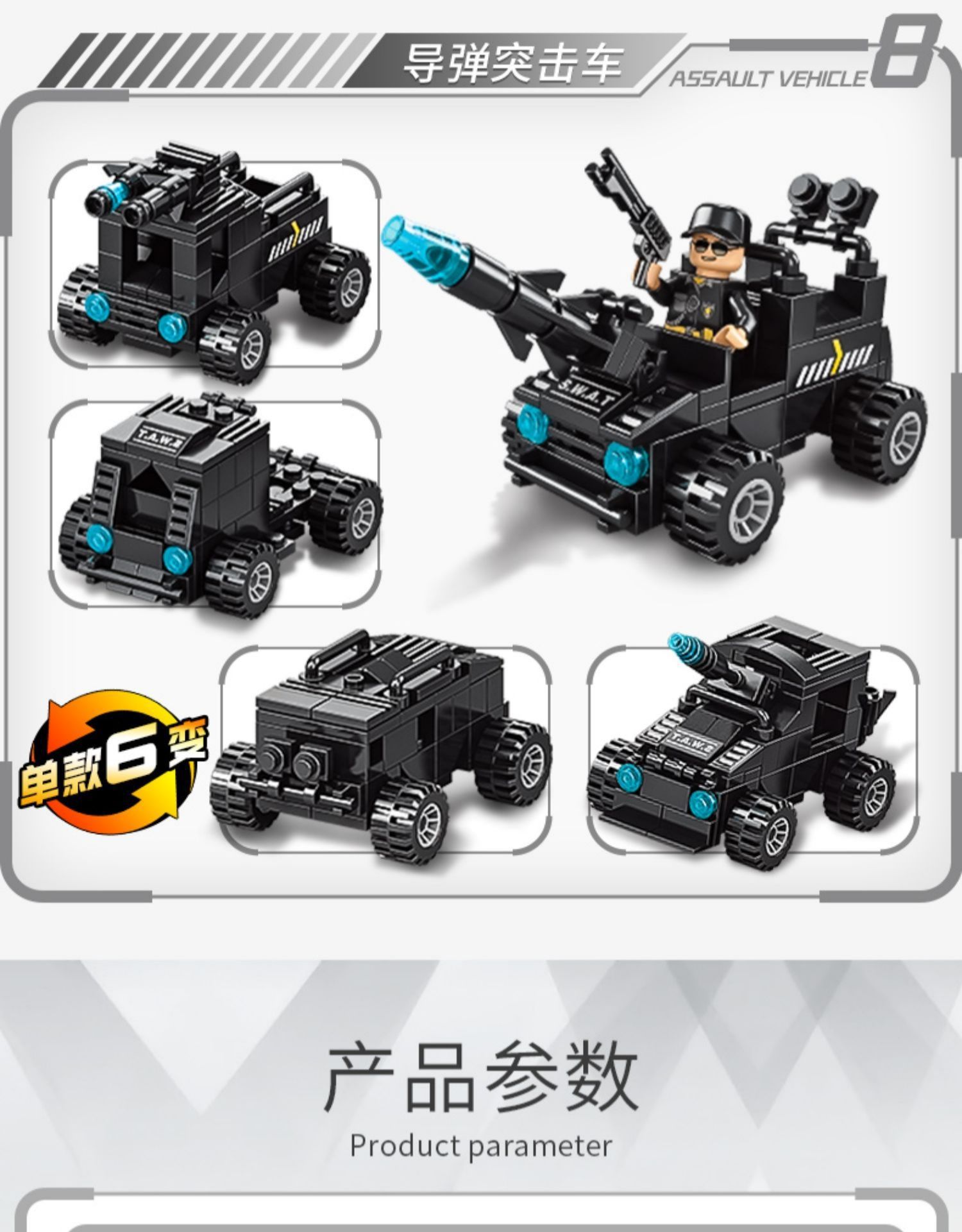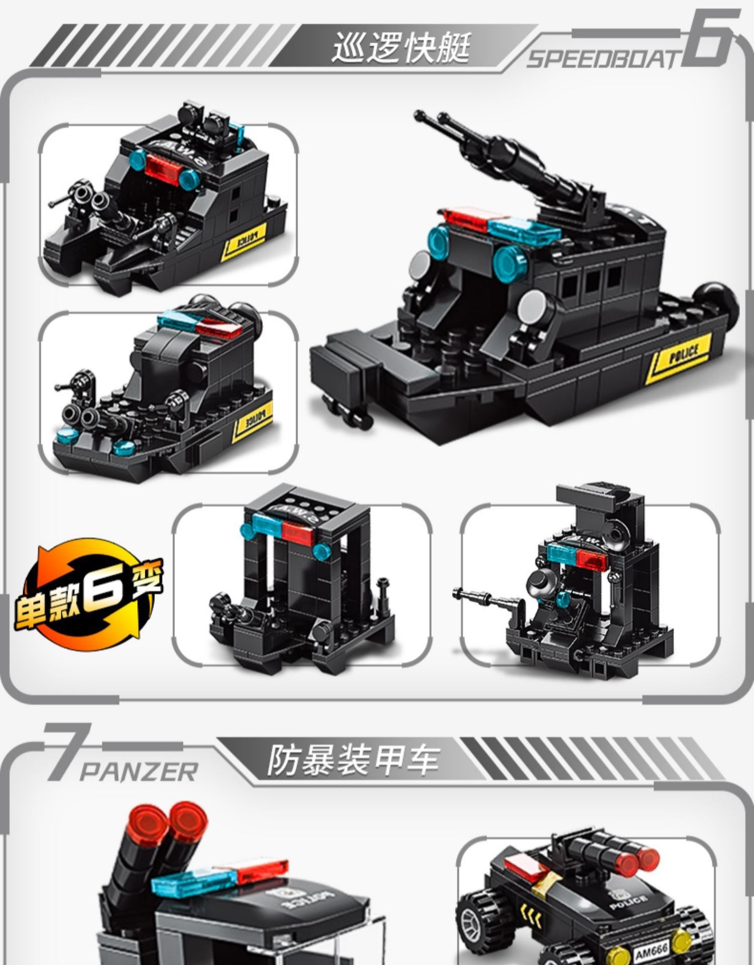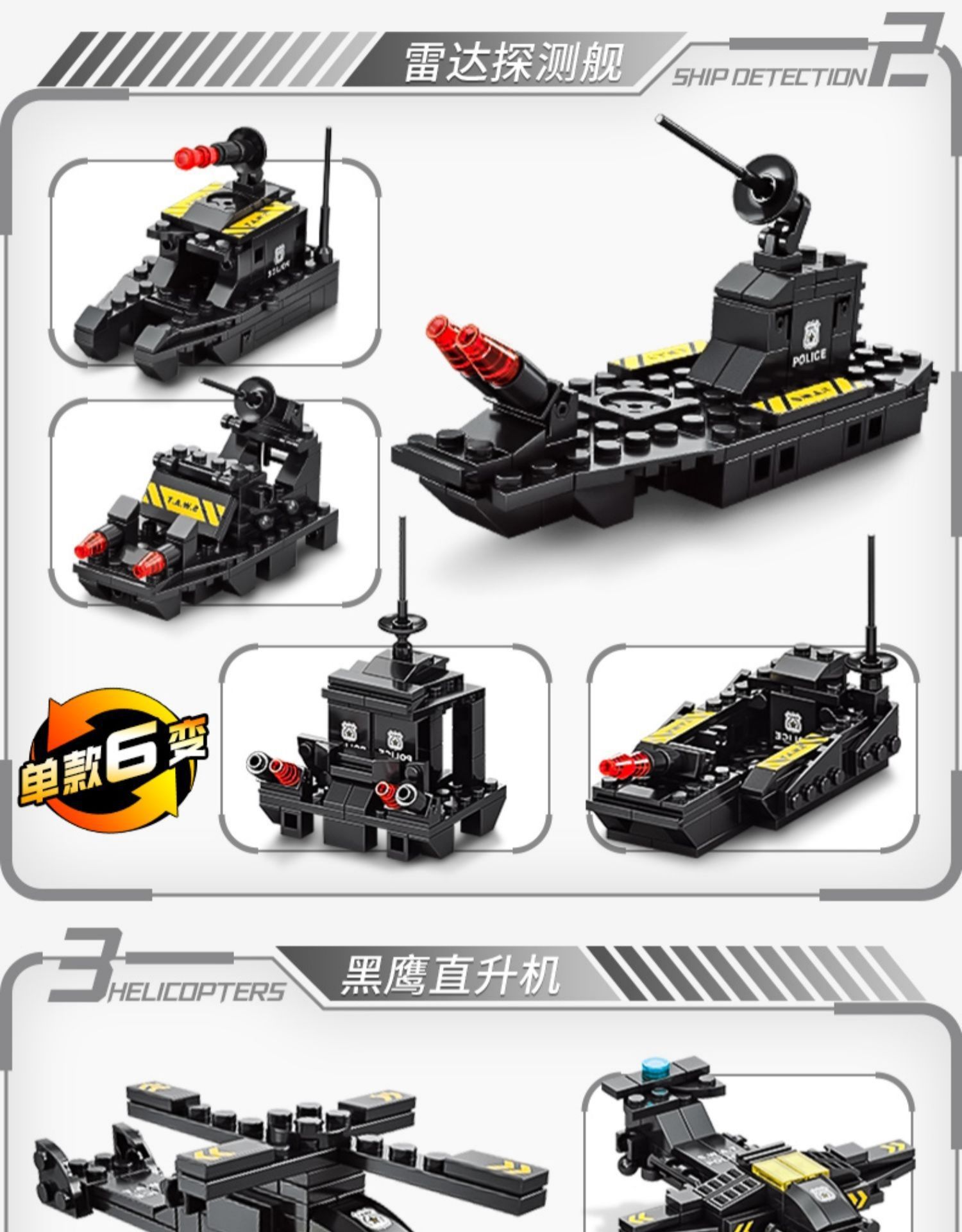 51变黑鹰特警战队700颗粒,19变黑鹰特警双翼直升机456颗粒,8合2钢铁帝国坦克大战1000颗粒,8合3先锋特警820颗粒,27变城市特警585颗粒,112战舰554颗粒,近半米长红海战舰1000颗粒,76厘米长导弹驱逐舰1560颗粒,6合1远洋战舰450颗粒,27变辽宁号航母728颗粒,8971-1乌拉圭防空车六合一138PCS,8971-2城堡六合一129PCS,8971-3特警装甲车六合一138PCS,8971-4火车六合一 118PCS,8971-5鲸鱼六合一 139PCS,8971-6蓝警机器人六合一135PCS,8971-7消防直升机六合一117PCS,8971-8鱼鹰六合一 117PCS,8970-1航母六合一138PCS,8970-2恐龙六合一160PCS,8970-3维修直升机六合一118PCS,8970-4特警直升机六合一127PCS,8970-5多拉巨炮六合一135PCS,8970-6迫击炮六合一137PCS,8970-7拖头导弹车六合一135PCS,8970-8装甲军事车六合一139PCS,8858航天飞船107PCS,8859航天火箭130PCS,8881空间站96PCS,8882星舰龙飞船 107PCS,8883阿波罗5号93PCS,8896猎鹰重型火箭79PCS,8897龙飞船88PCS