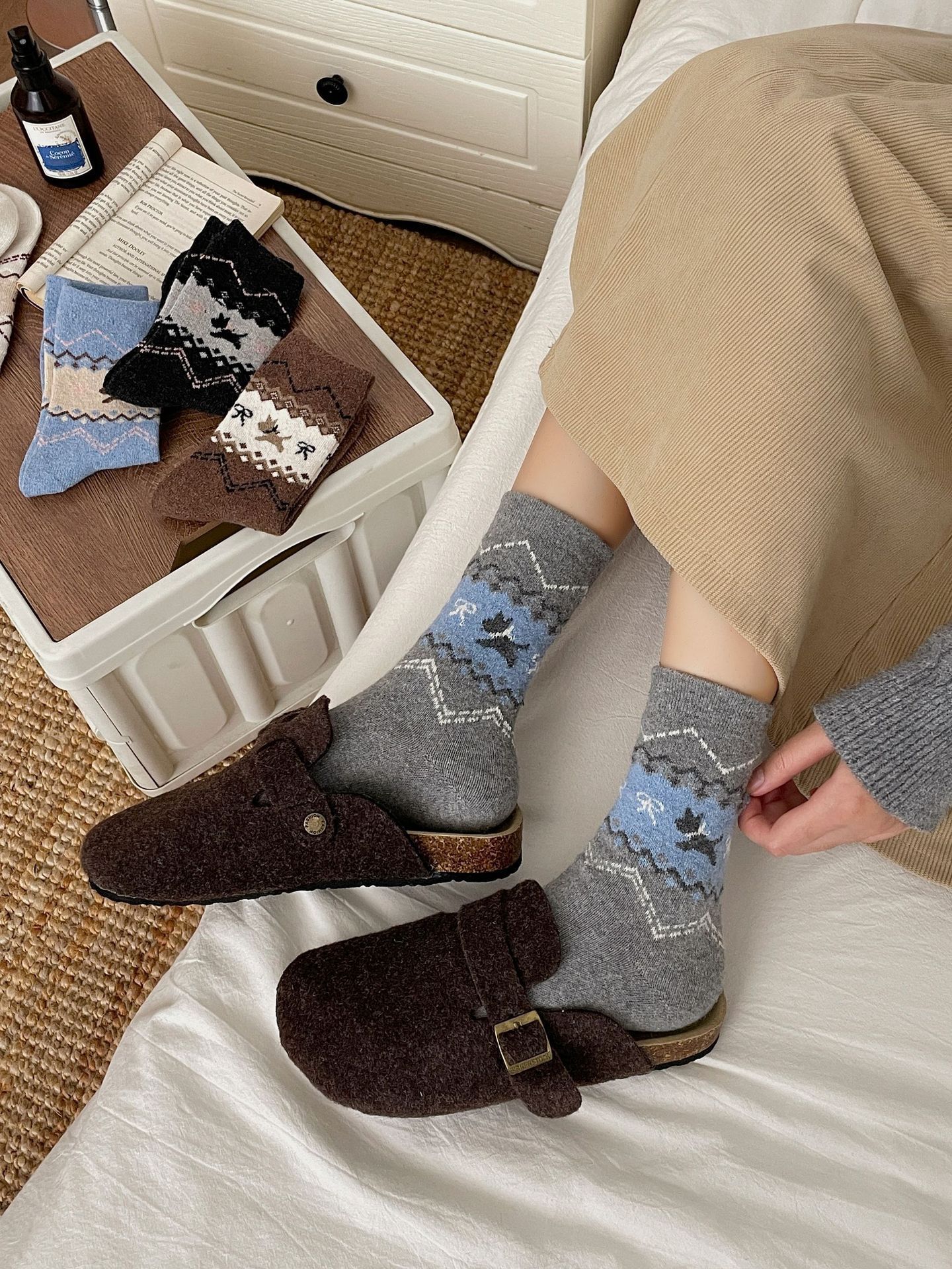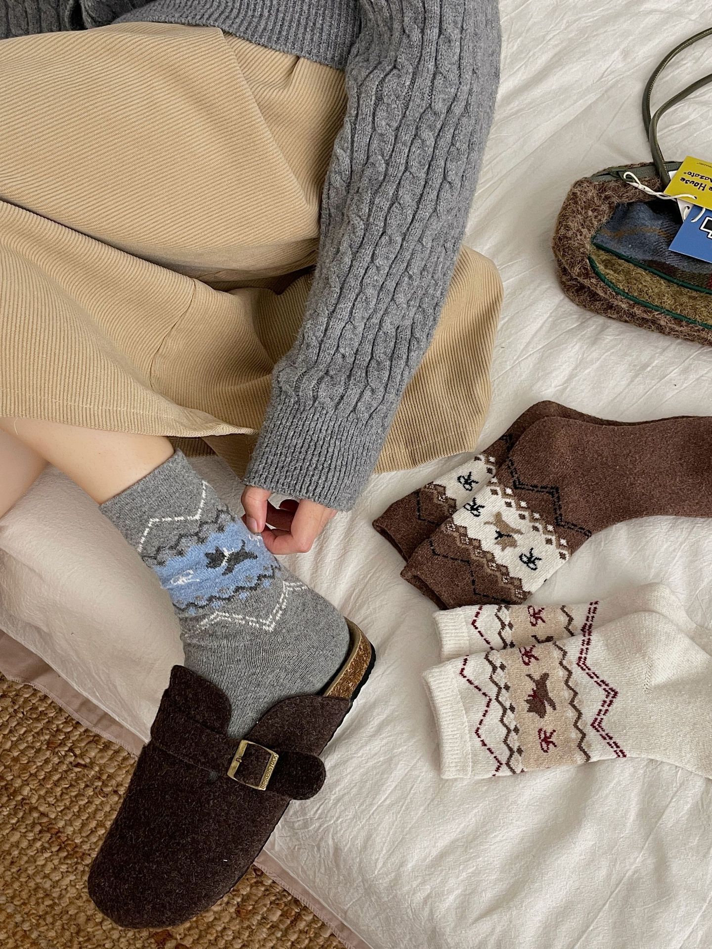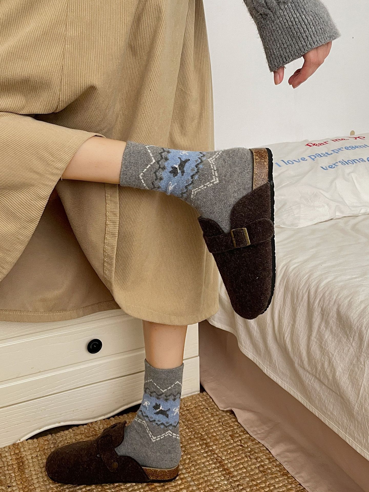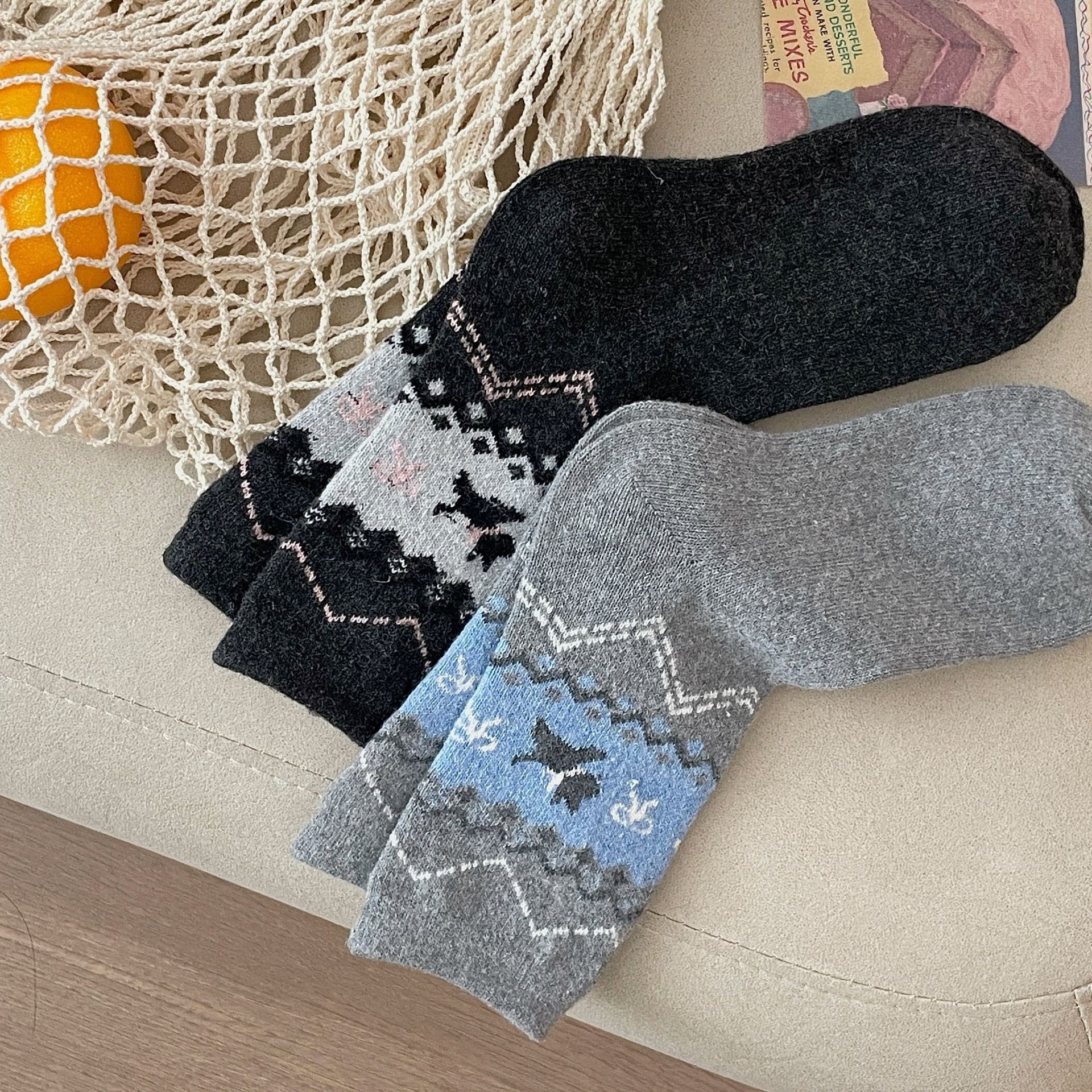 诸暨袜子女士秋冬中筒袜新款复古民族风费尔岛ins风百搭潮流长筒
