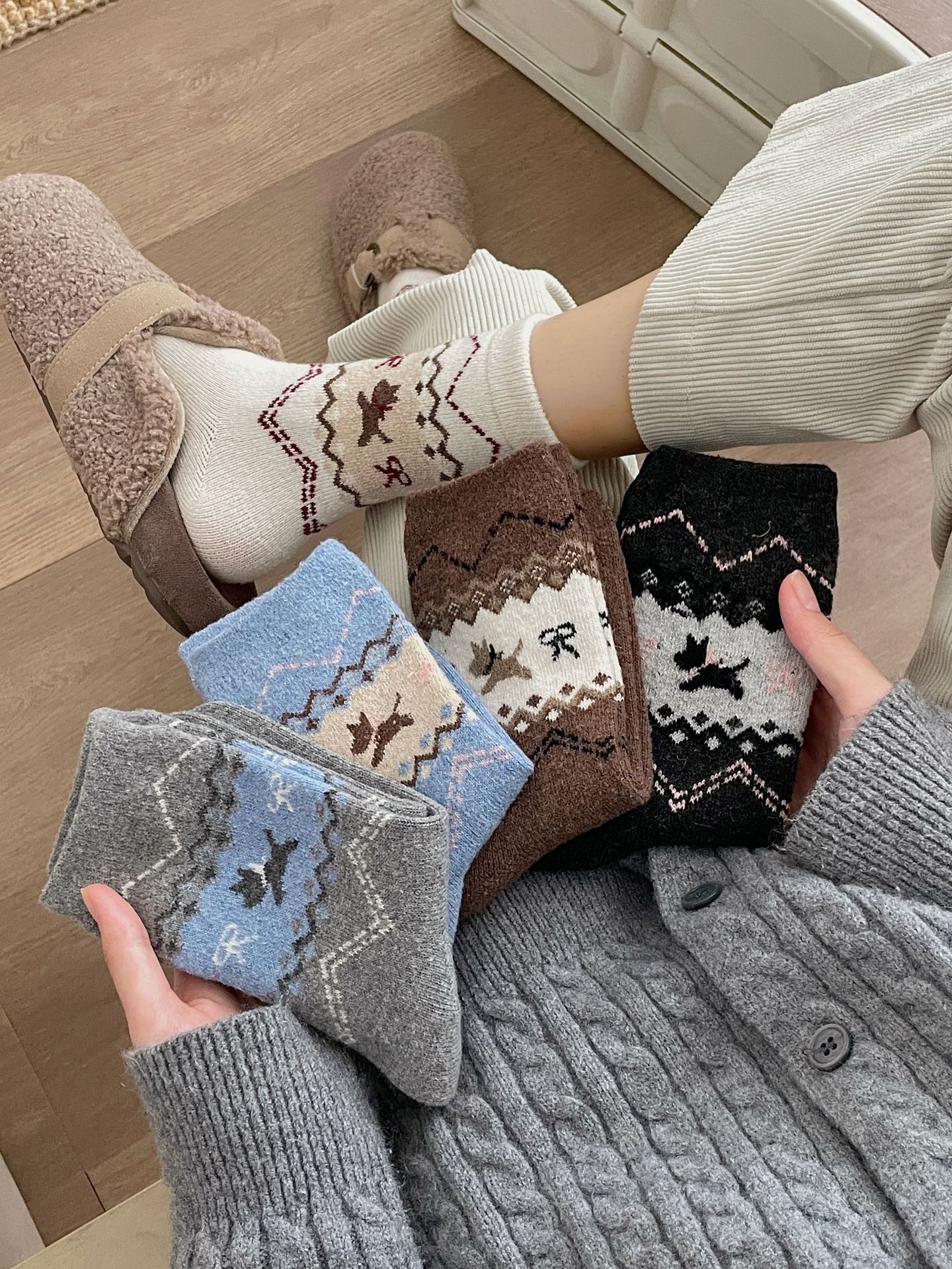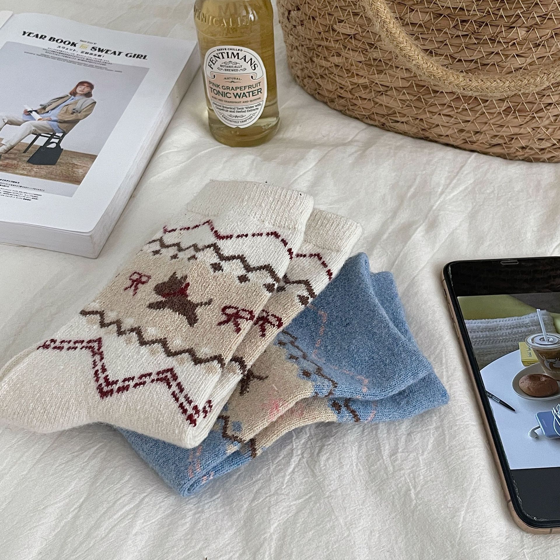 秋冬保暖袜子女新款民族风费尔岛中筒袜ins潮流堆堆袜百搭长筒袜