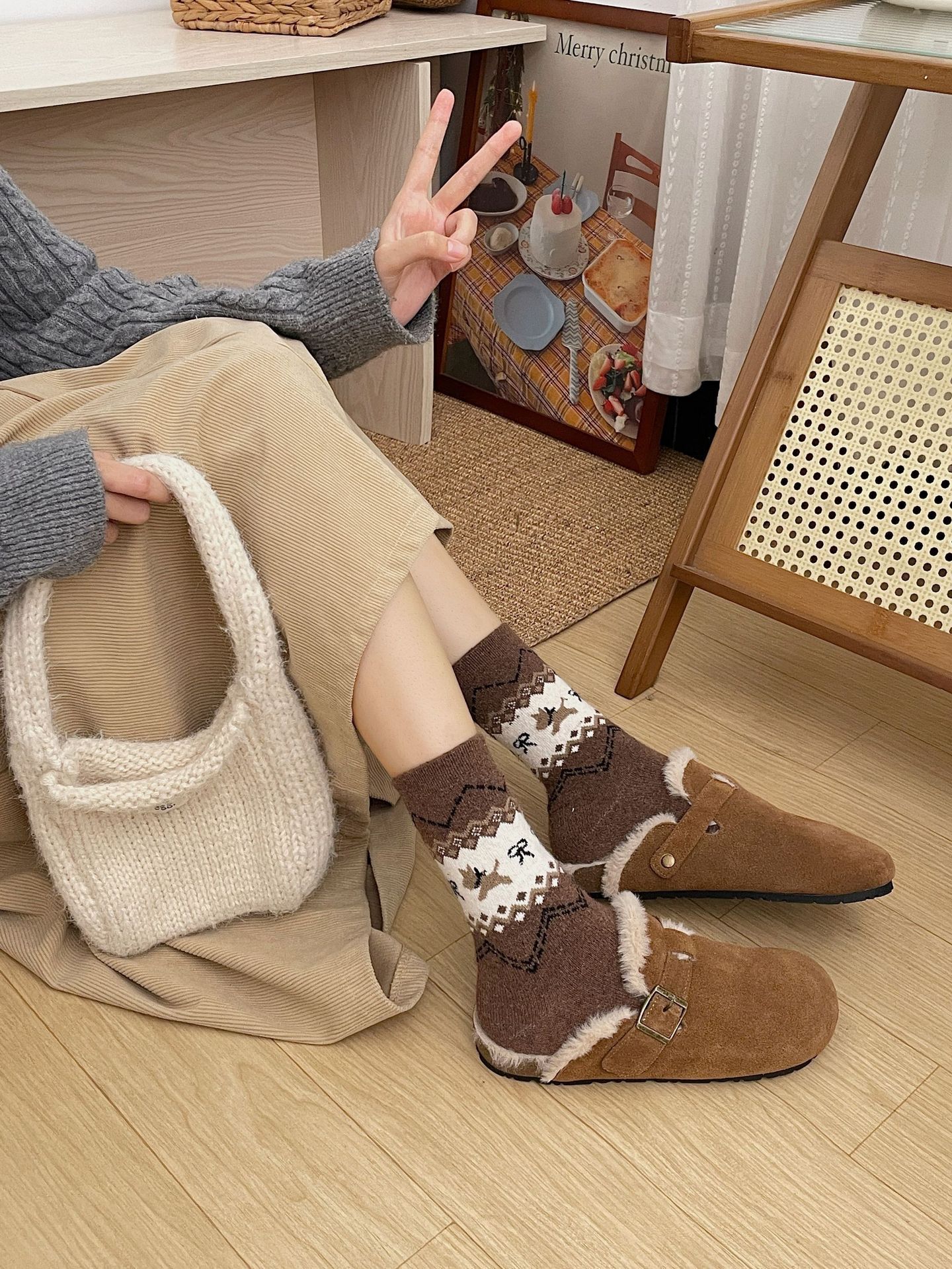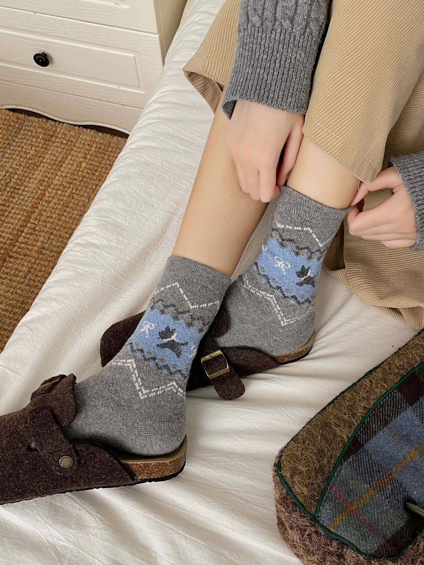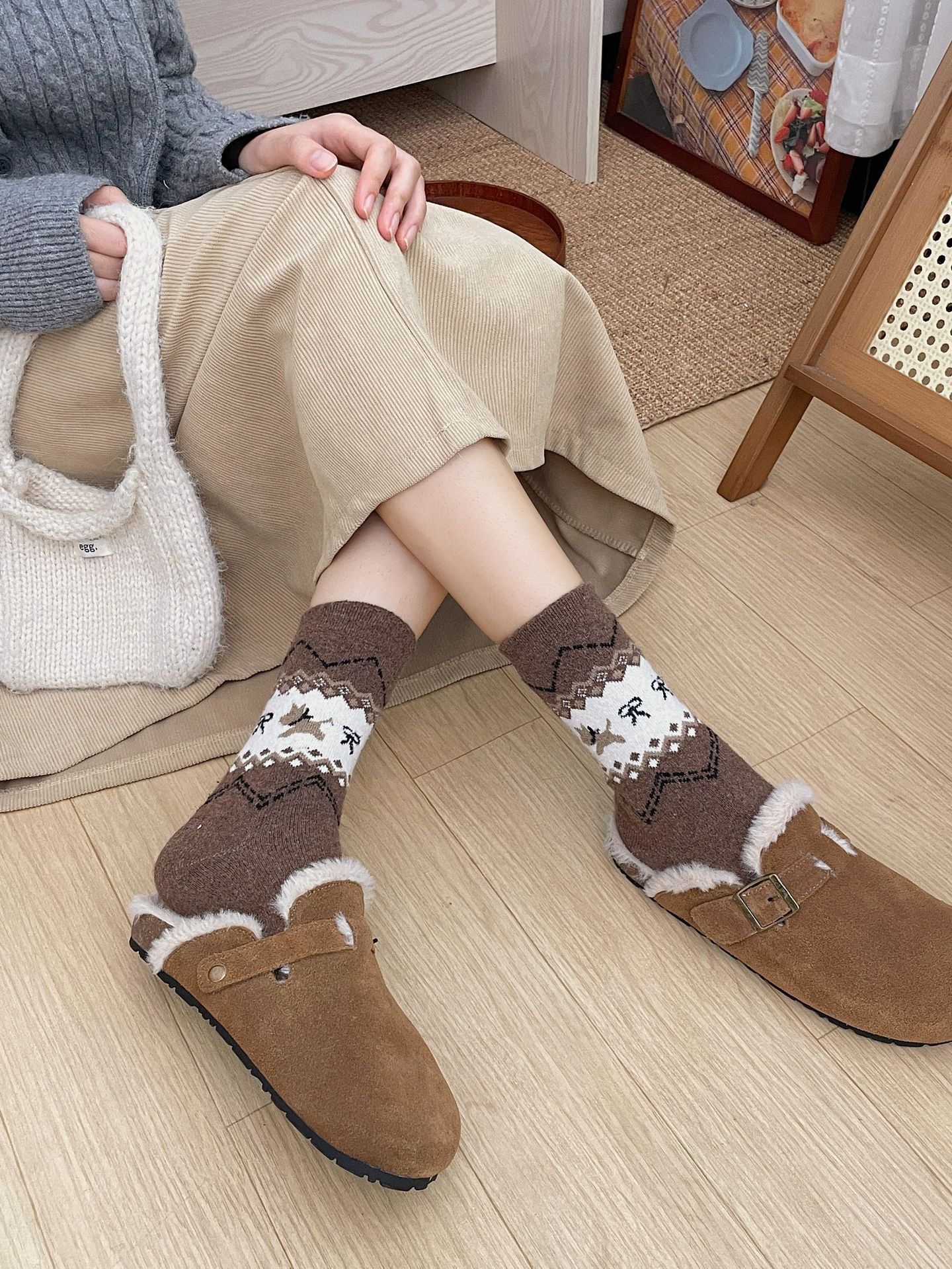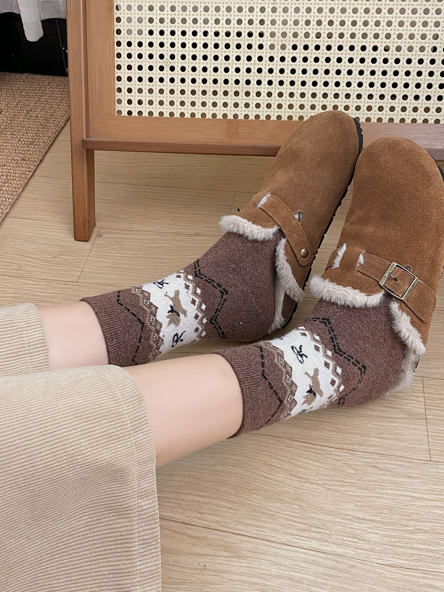 袜子女秋冬保暖中筒袜ins复古民族风长筒袜美拉德休闲百搭堆堆袜