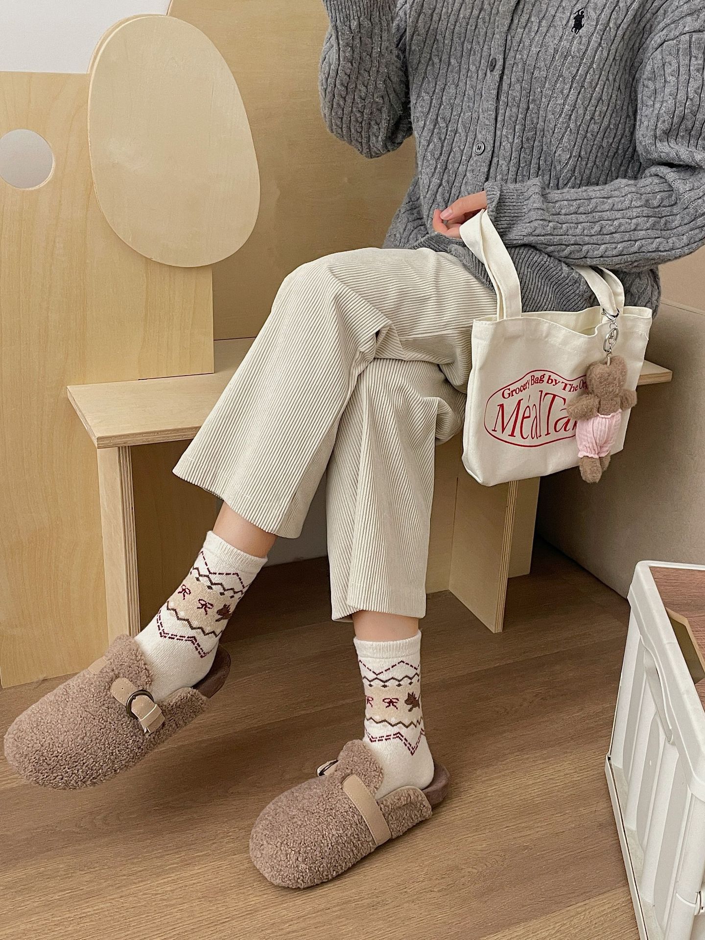 袜子女士中筒袜秋季新品费尔岛小狗堆堆袜潮流百搭秋季保暖长筒袜