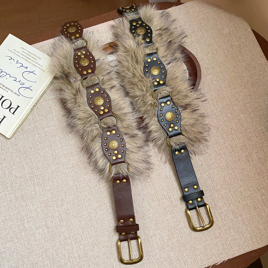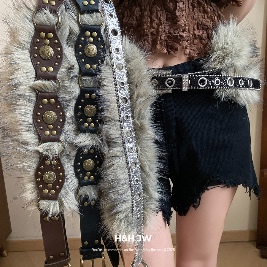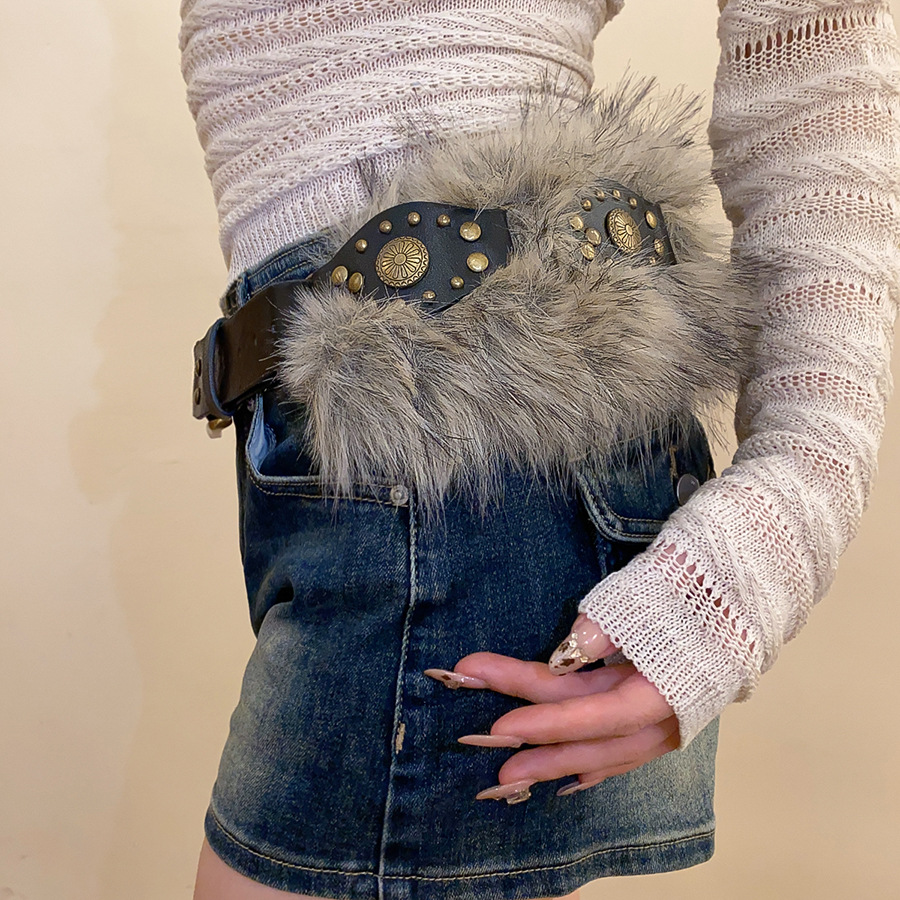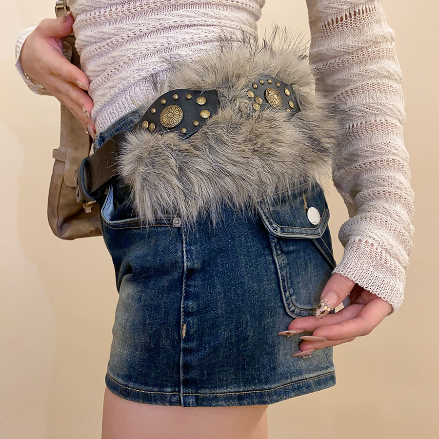 朋克千禧风皮带女配裙子装饰连衣裙时尚y2k辣妹毛毛拼接腰带配饰