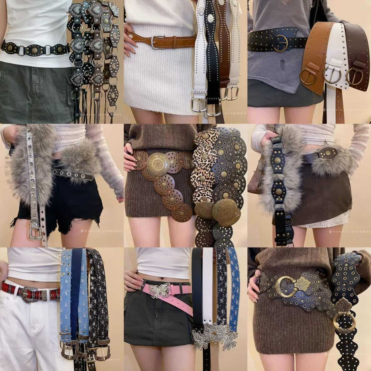 欧美跨境皮革铆钉蝴蝶卡扣腰链小众设计腰带甜酷辣妹时尚气质腰饰