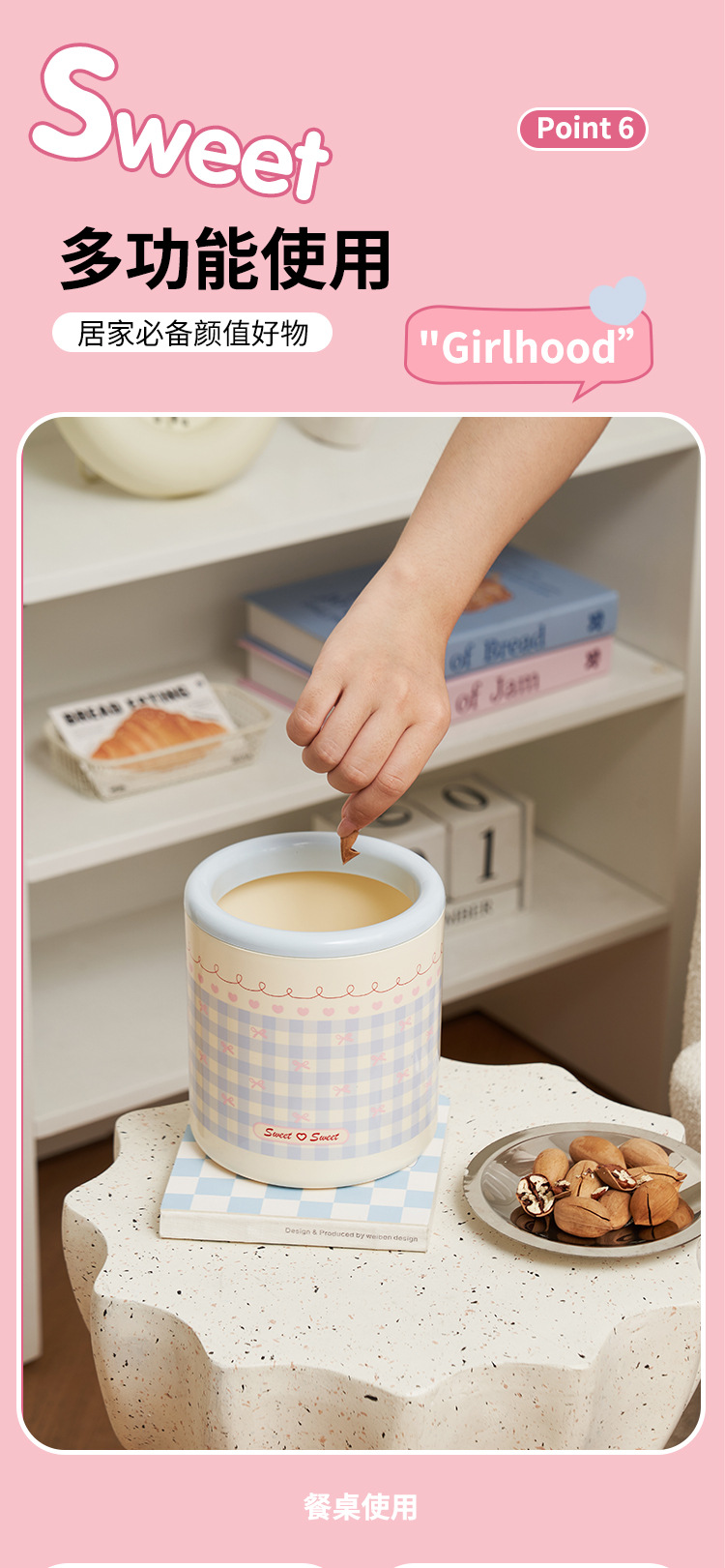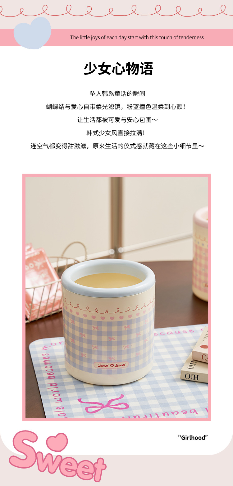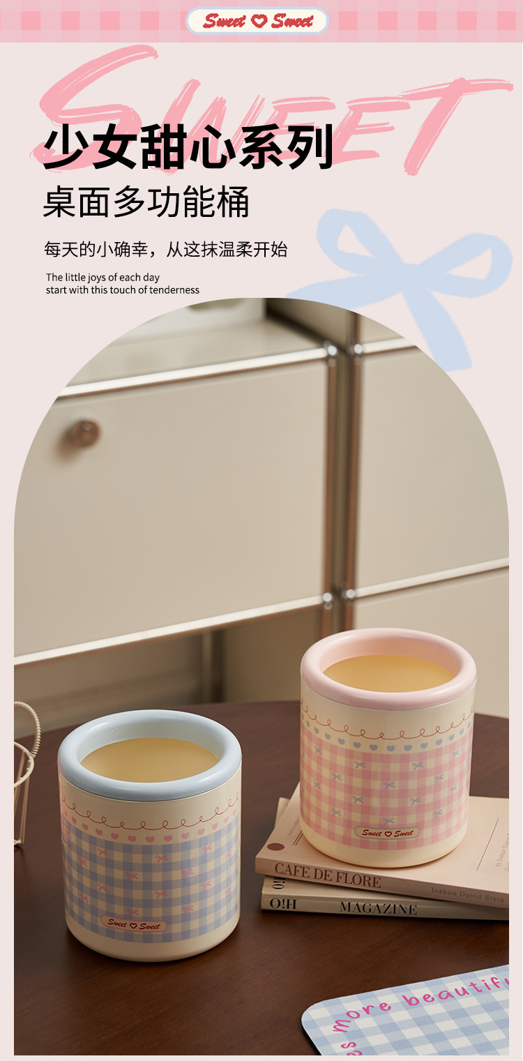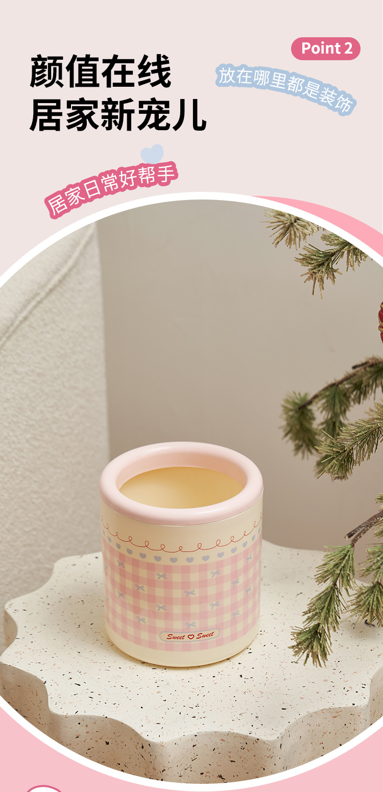 甜心少女垃圾桶带滑轮高颜值家用纸篓客厅大容量可移动少女ins风