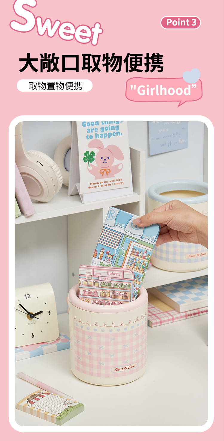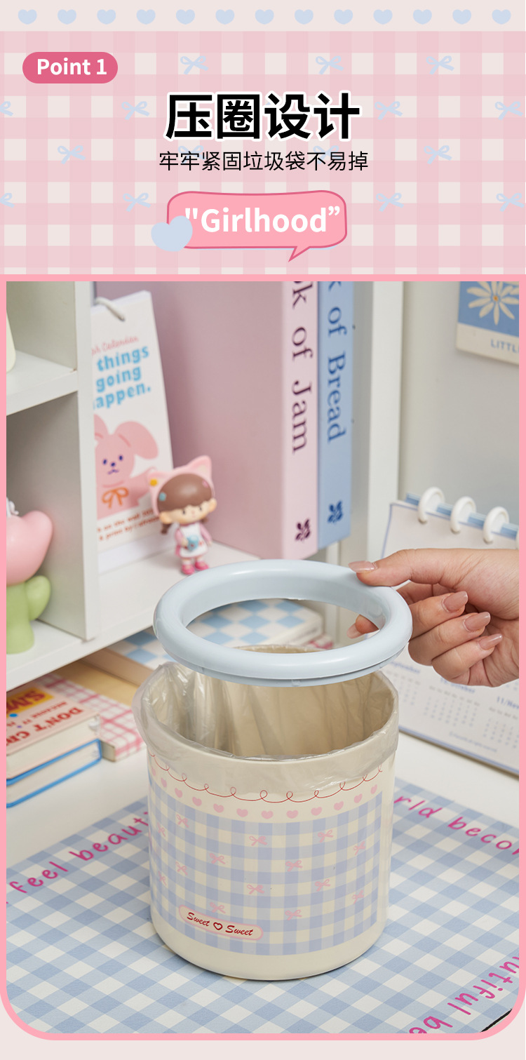 かわいい寮のデスクトップゴミ箱イン大容量高価値ドーパミン寝室リビングルーム蓋なし紙バスケット家庭用