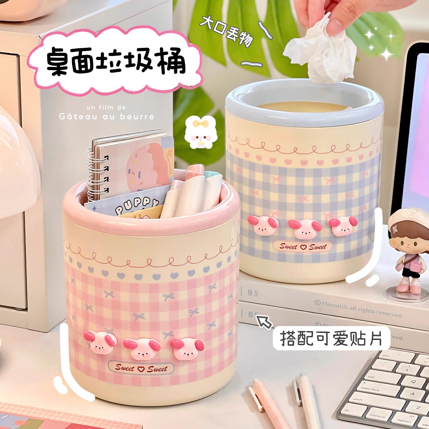 漫画かわいいデスクトップ文具収納バケツミニ収納ボックス高価値オフィス寮デスクトップ紙バスケット雑貨バケツ