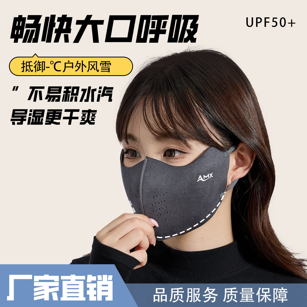 时尚保暖口罩 秋冬高颜值百搭芝麻三色骑行防风透气无痕德绒面罩