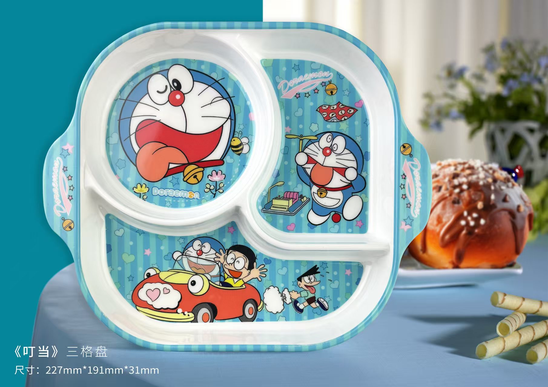 卡通机器猫蜡笔小新凯蒂猫美乐蒂玉桂狗分格家用餐盘宝宝辅食碗