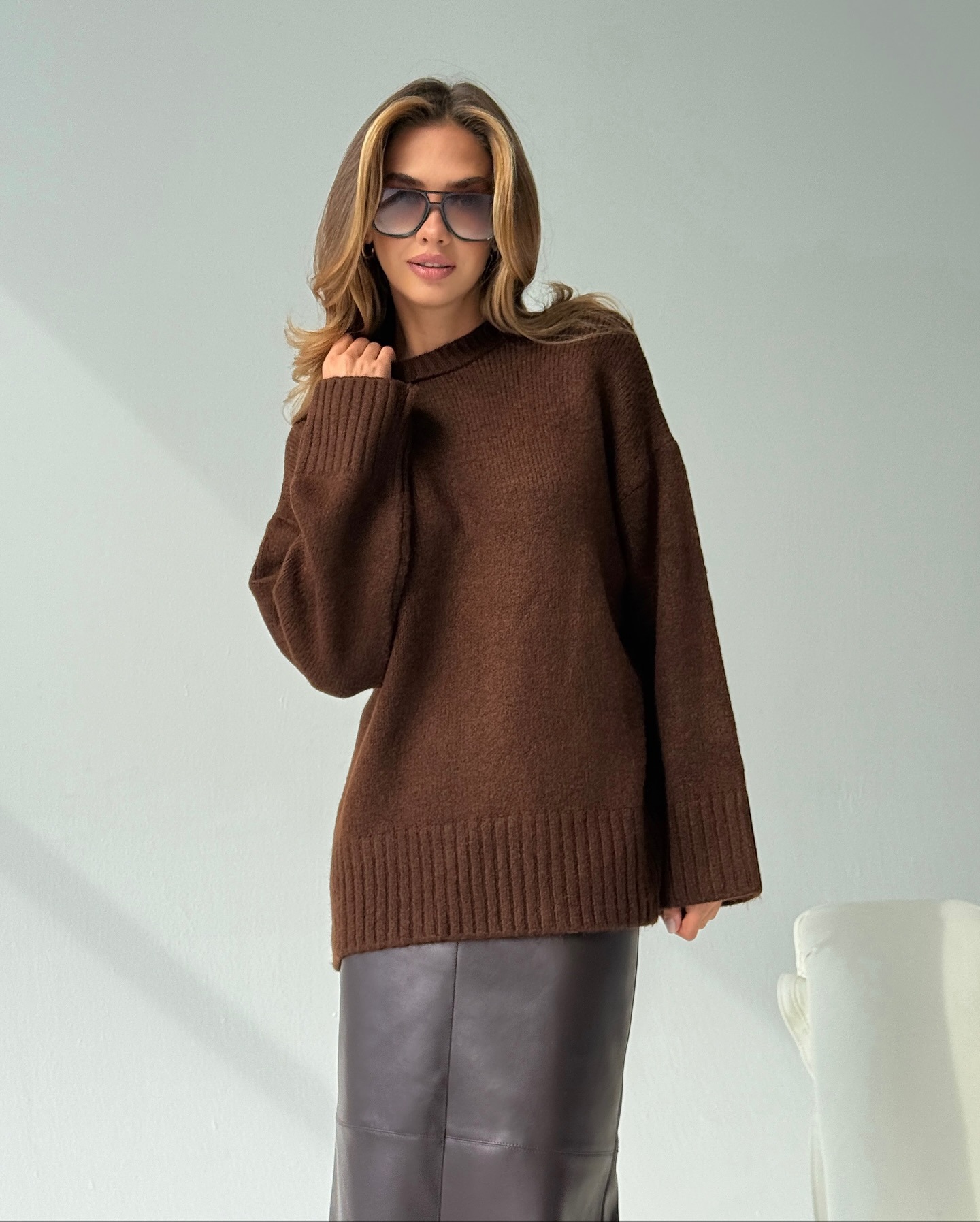 跨境女装亚马逊欧洲站秋冬新款针织衫纯色基础加厚保暖百搭毛衣女