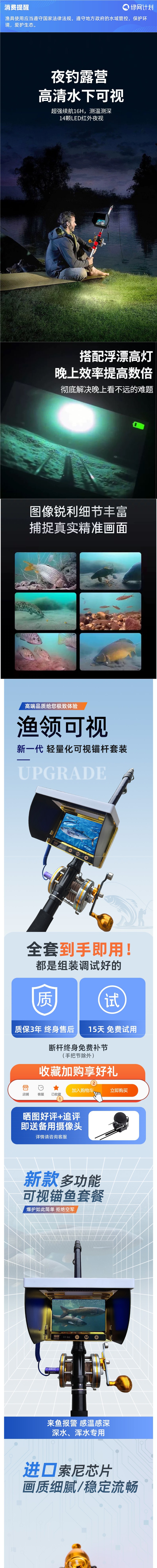 可视锚鱼竿全套高清夜视摄像头水下探鱼器套装浑水钓鱼锚鱼神器