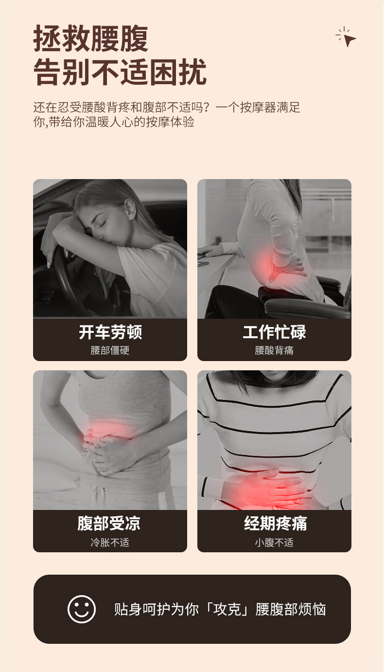 脉冲腰带按摩器EMS微电流腰腹部热敷肚子运动家用加热腰部按摩仪